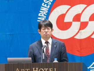 その後、3つの関係委員会における2026春季生活闘争基本構想についての討議経過について、安河内労働条件・中⼩労働委員会委員⻑、堀谷労働法制委員会委員⻑、櫻田ジェンダー平等・多様性推進委員会委員長がそれぞれ報告しました。