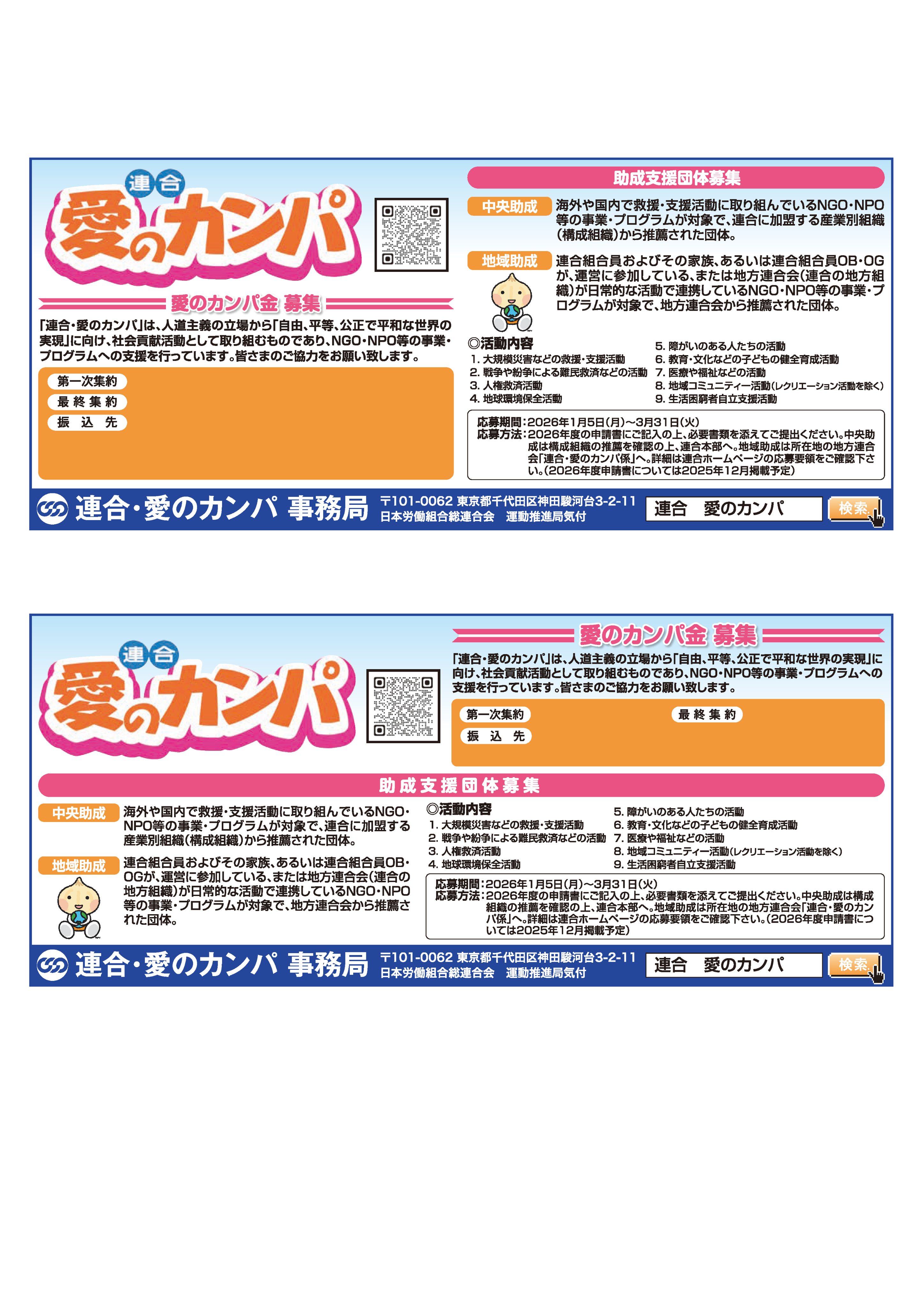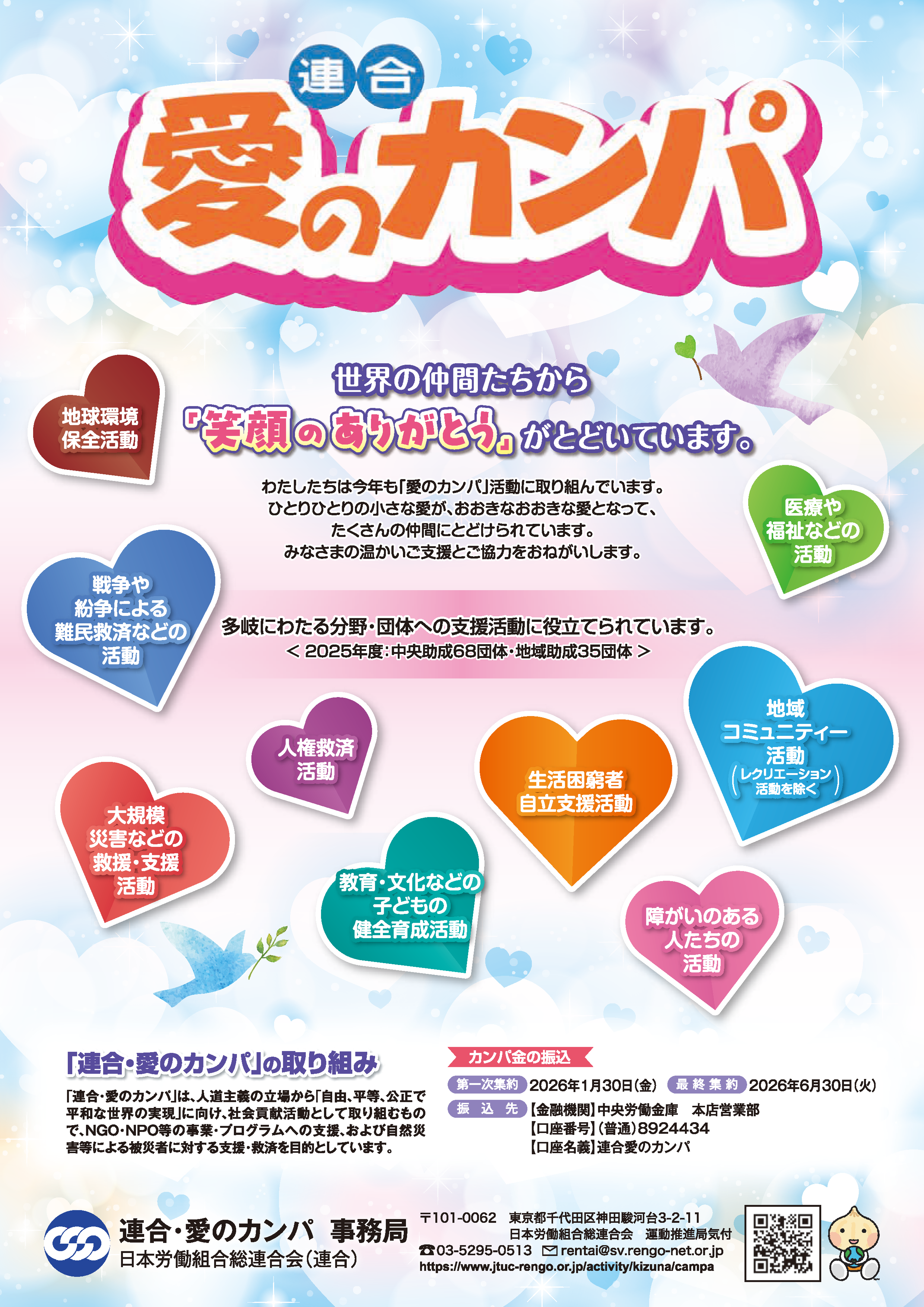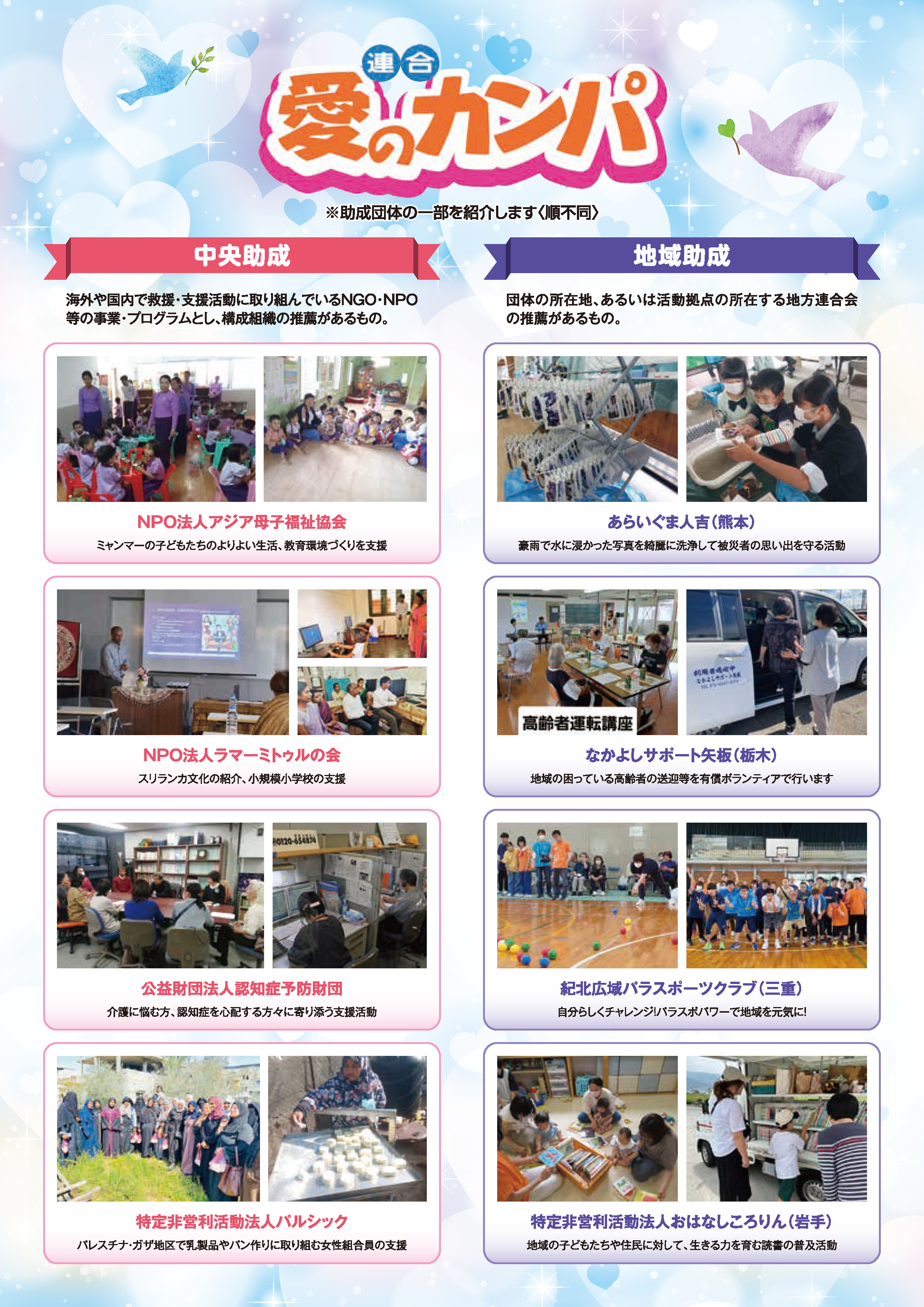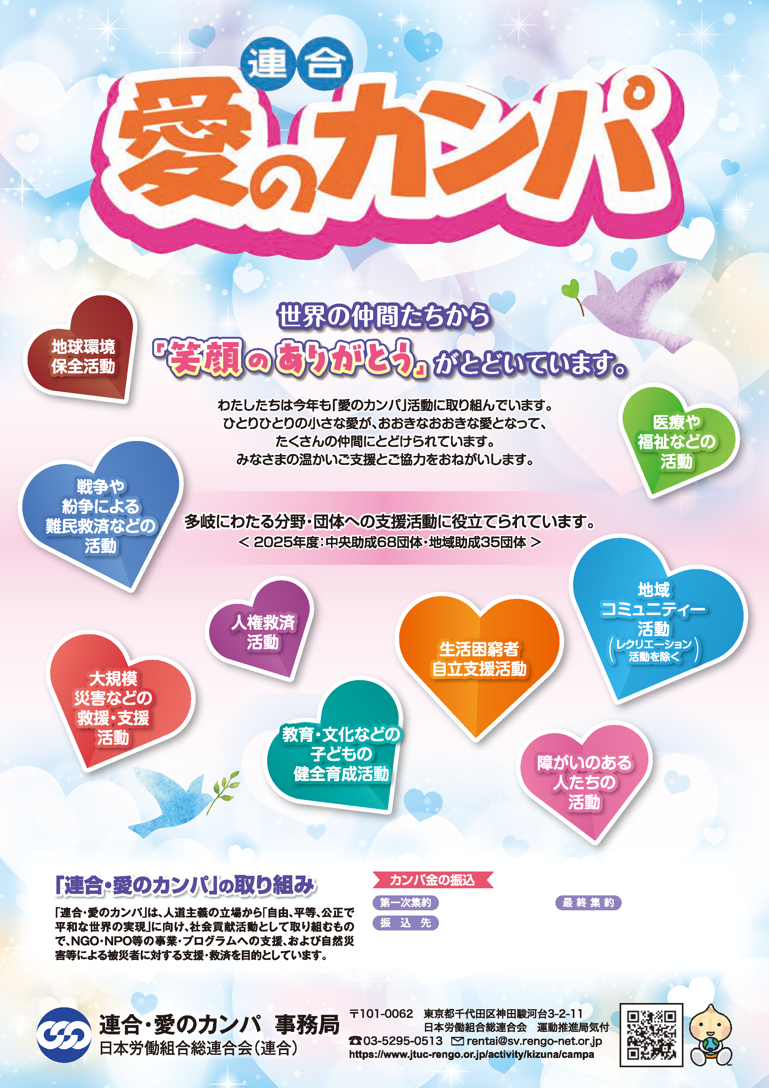 ※2026年度 愛のカンパ助成 応募・申請は、2025年12月に当ページにて案内予定です。