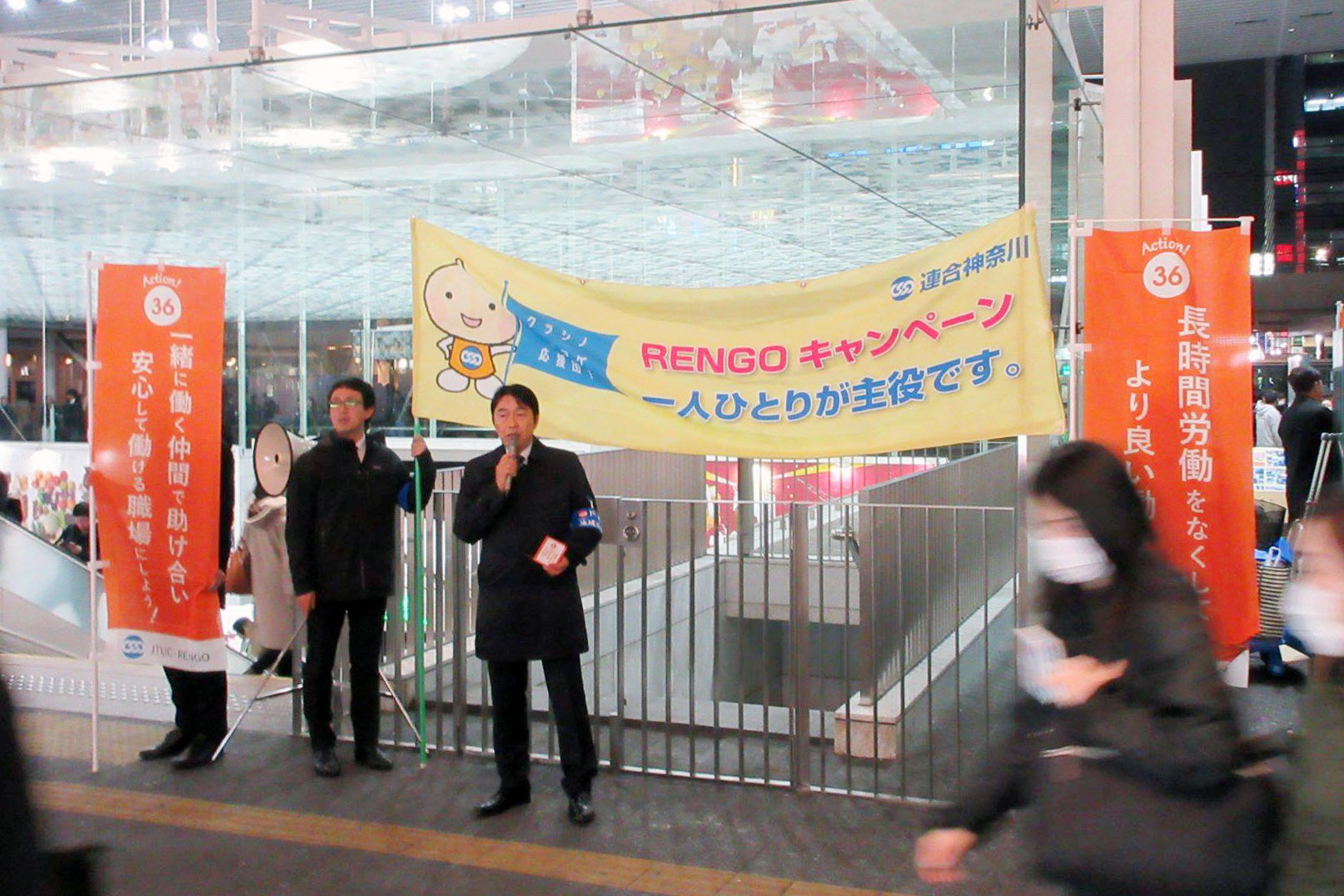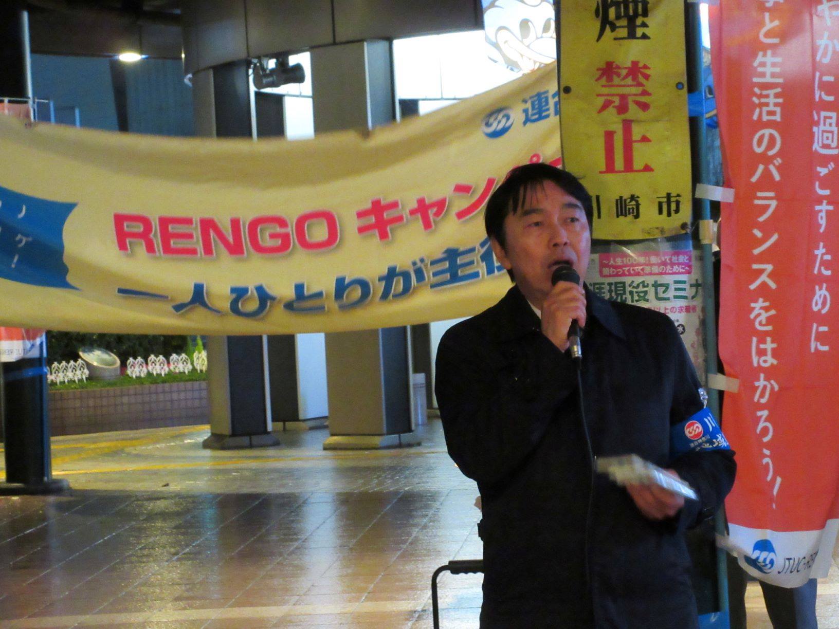 連合神奈川 川崎地域連合3.4「クラシノソコアゲ応援団!Action36 駅頭 キャンペーン」の実施