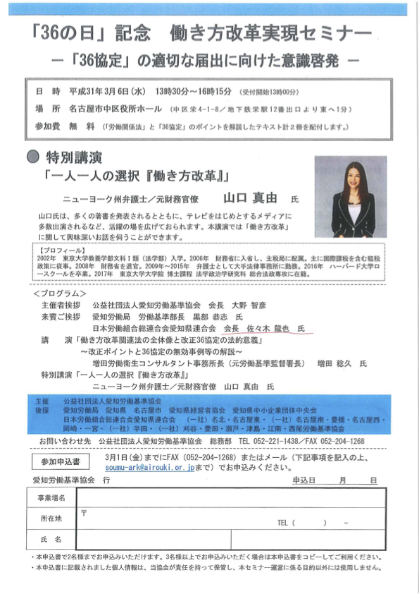 連合愛知:「36の日」記念 働き方改革実現セミナー