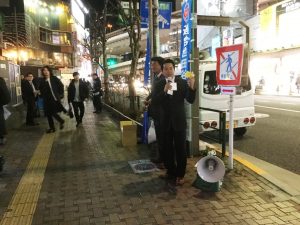 お知らせ・イベント 連合東京 世田谷地区協3.12駅頭行動 2019.03.12 連合世田谷地区協は、3月12日(火)三軒茶屋キャロットタワービル周辺にて2019春季生活闘争街頭宣伝行動を実施し、「知っていますか?36協定!」などの記載があるチラシ入りティッシュを配布しました。マイクを通して「労働組合は、だれでも入れ、作れること」「連合が取り組んでいること」などを訴えました。用意したチラシ入りティッシュも早々に配布が終わり終了となりました。