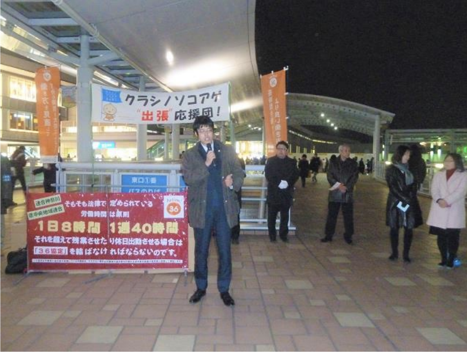 2月15日(金)18 時から海老名駅前にて Action!36 の取り組み としてクラシノソコアゲ応援団! 街頭キャンペーを行いました。