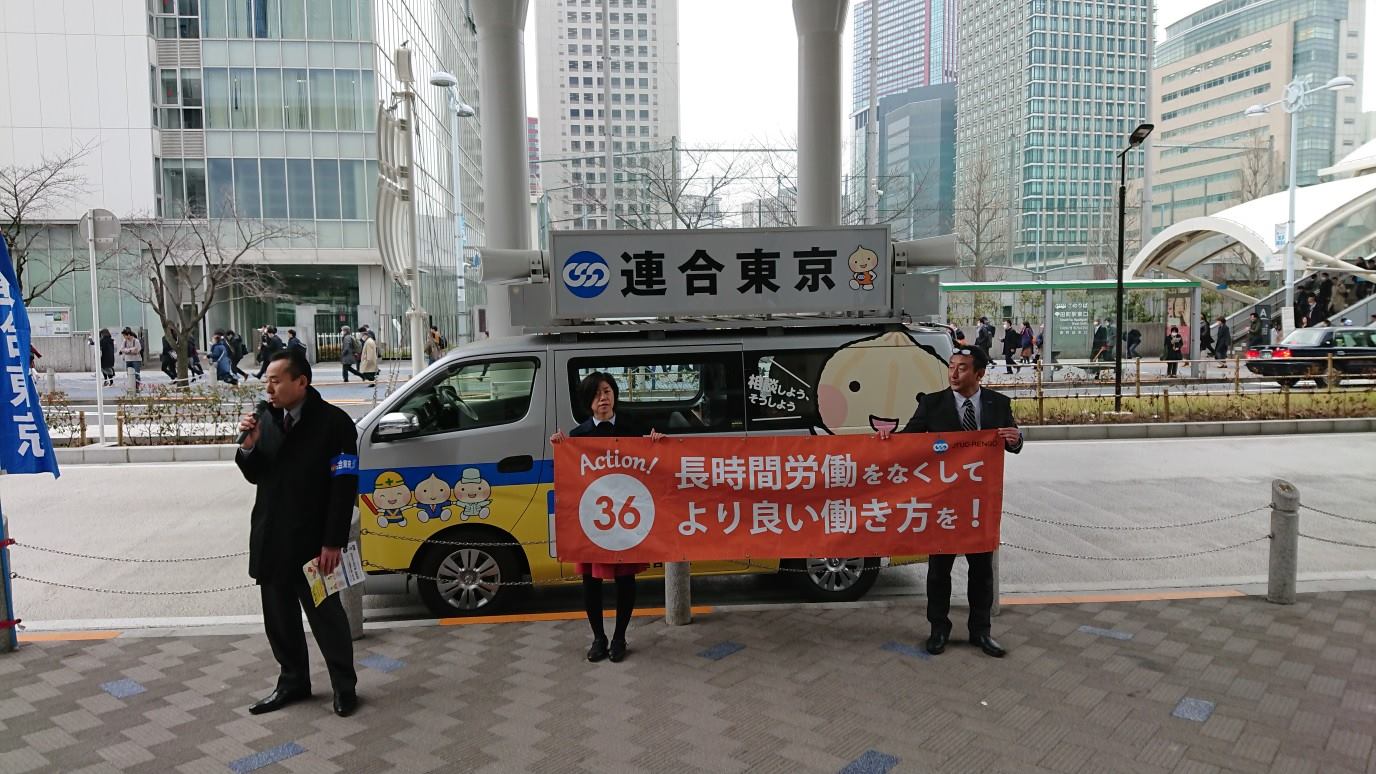 お知らせ・イベント 連合東京3.6早朝街宣行動の実施! 2019.03.06 今日は「36(サブロク)の日」、駅頭行動を各地で展開中! 連合東京は、早朝に田町駅芝浦口、連合三多摩は立川駅北口にて36協定の大切さを訴えました。