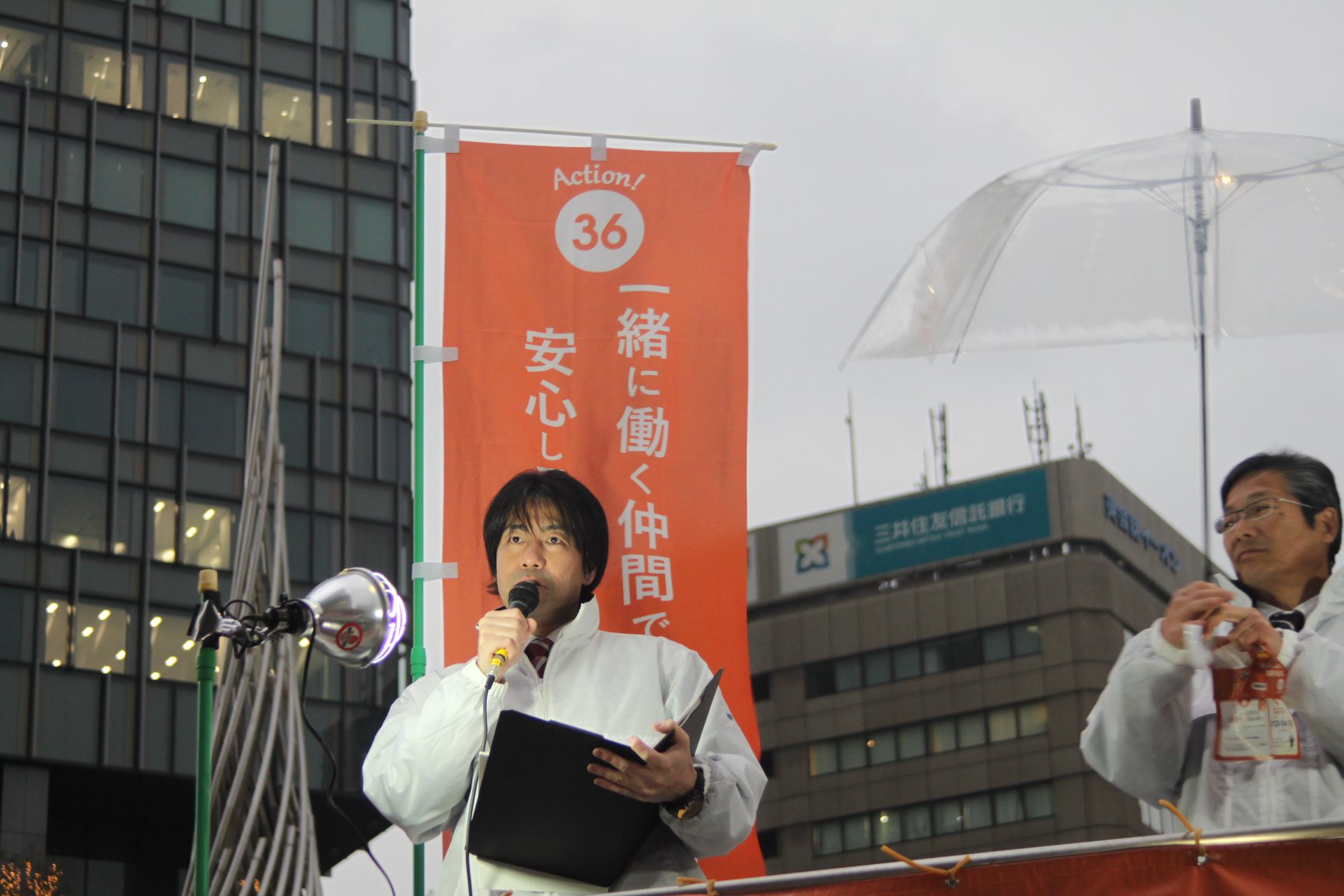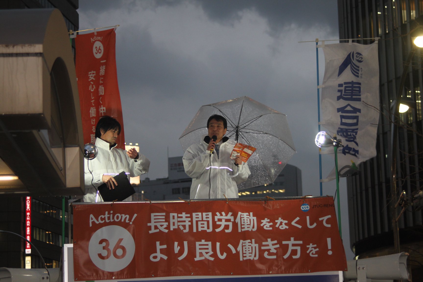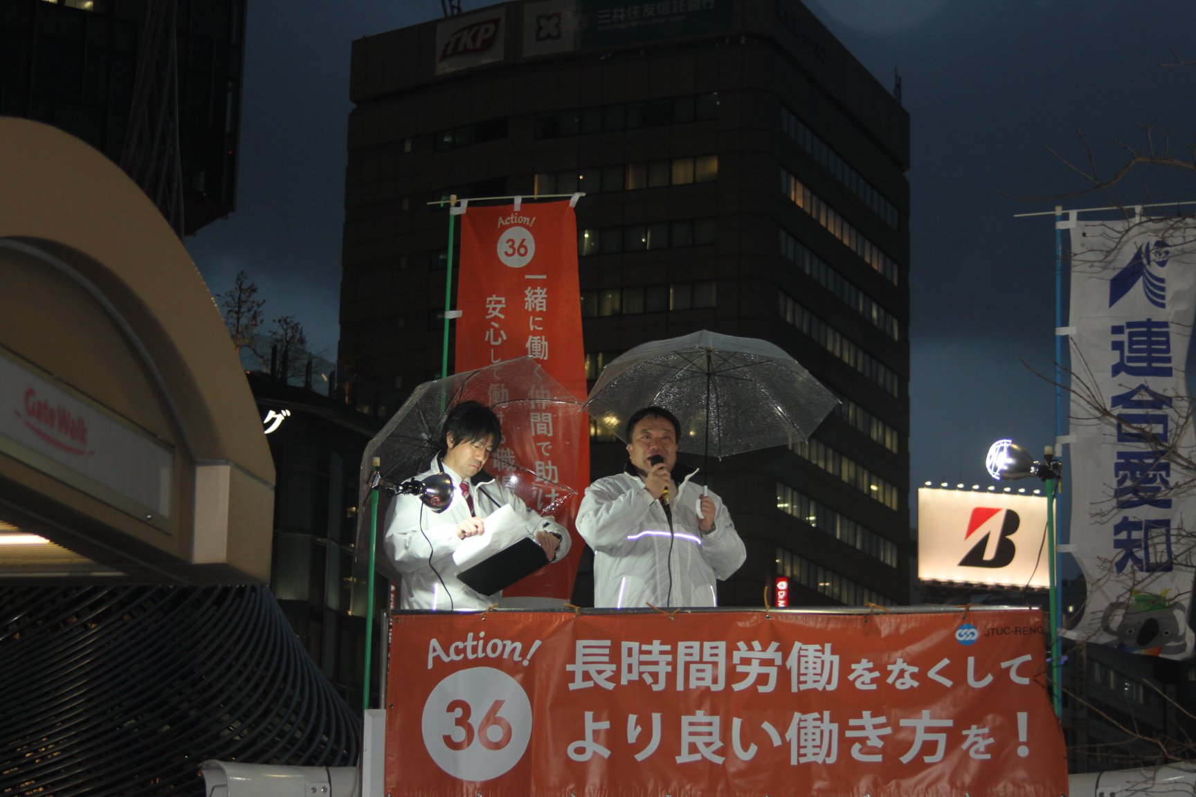 お知らせ・イベント 連合愛知「36(サブロク)の日」街頭宣伝行動の実施! 2019.03.06 本日、3月6日は「サブロクの日」です!!会社が残業をさせるためには「36(サブロク)協定」の締結が不可欠です。この36協定を皆さんに知ってもらいたい!ちゃんと守ってもらいたい!!その想いで、雨にも負けず街頭宣伝行動を実施しました! 長時間労働の是正に向け、全員で取り組みましょう!