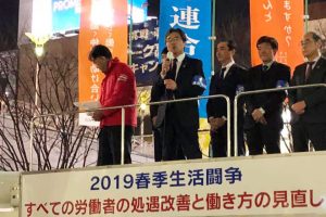 JR小倉駅前で連合福岡北九州地協主催の2019春闘開始宣言集会で