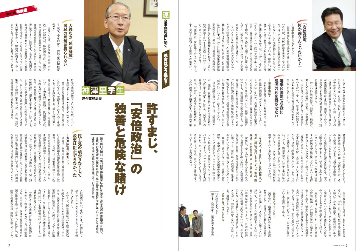 連合は11月18日、「第47回衆議院選挙に向けた連合と民主党の政策協定」を結び、8項目の重点政策の実現に向け、民主党を全面的に支援していくことを決めた。連合は、今回の選挙をどう位置づけ、どう挑むのか