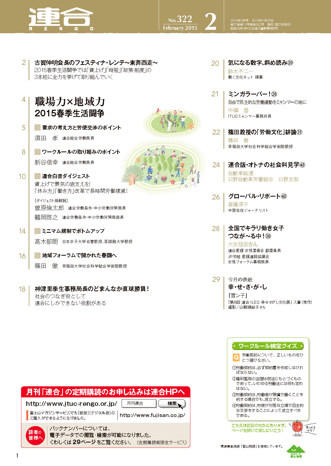 2015春季生活闘争は、いわゆる「春闘」による賃金決定方式がスタートして60回目の節目の年。
