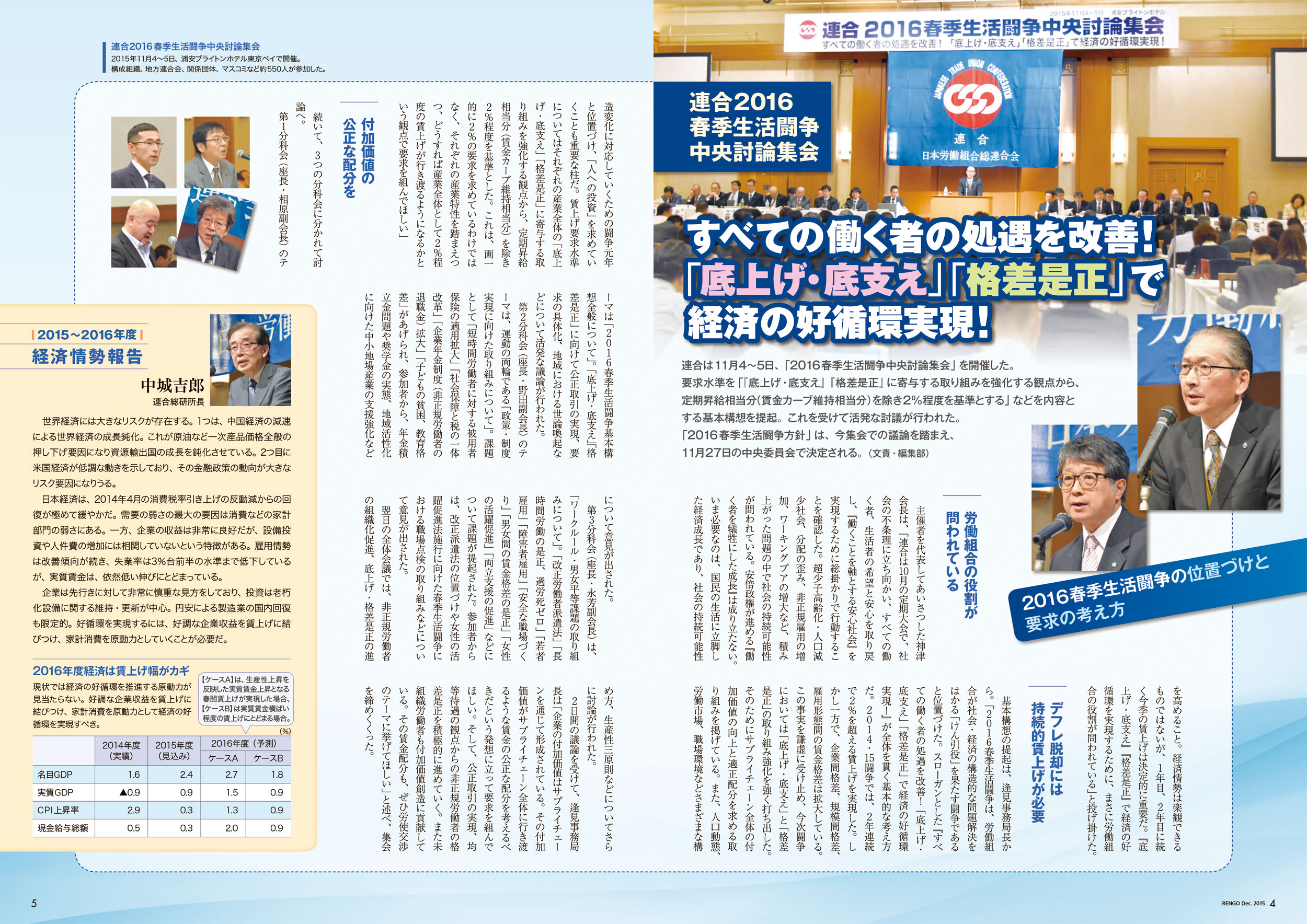 連合は11月4~5日、「2016春季生活闘争中央討論集会」を開催した。