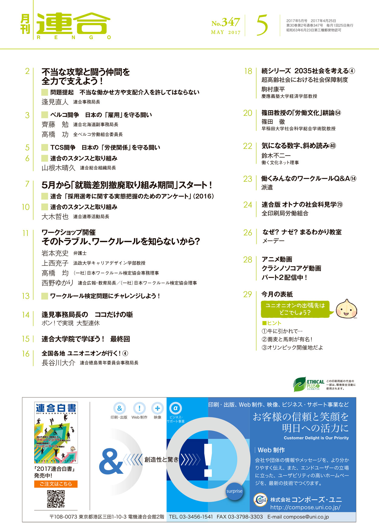 今、「働き方改革」の実現に向けて、労働組合や労使関係への期待が高まる一方、それを否定・破壊するような動きが出ている。連合の仲間が、それをはね返そうと日夜闘っている。