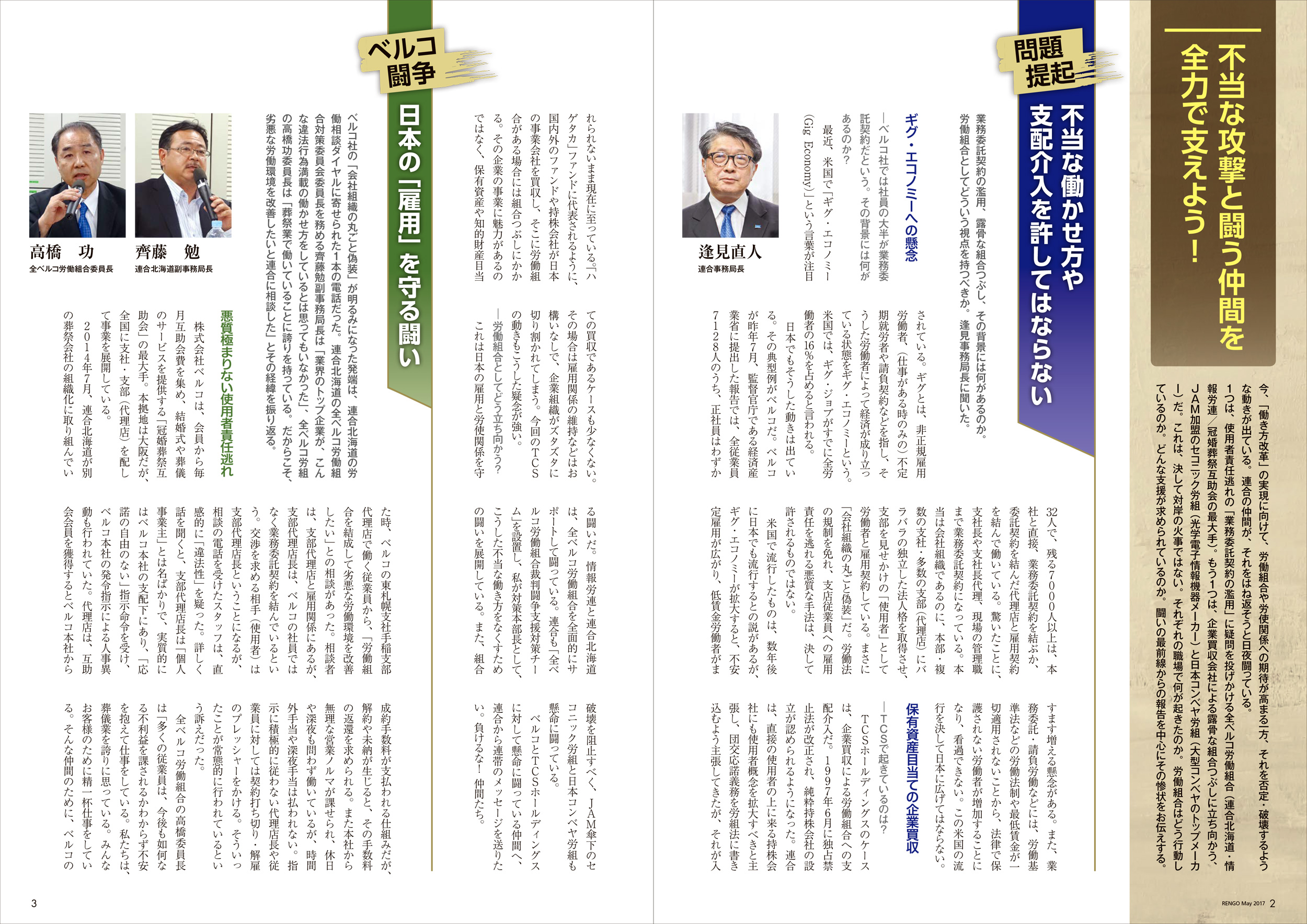 1つは、使用者責任逃れの「業務委託契約の濫用」に疑問を投げかける全ベルコ労働組合(連合北海道・情報労連/冠婚葬祭互助会の最大手)。もう1つは、企業買収会社による露骨な組合つぶしに立ち向かう、JAM加盟のセコニック労組(光学電子情報機器メーカー)と日本コンベヤ労組(大型コンベヤのトップメーカー)だ。これは、決して対岸の火事ではない。それぞれの職場で何が起きたのか。労働組合はどう行動しているのか。どんな支援が求められているのか。闘いの最前線からの報告を中心にその惨状をお伝えする。
