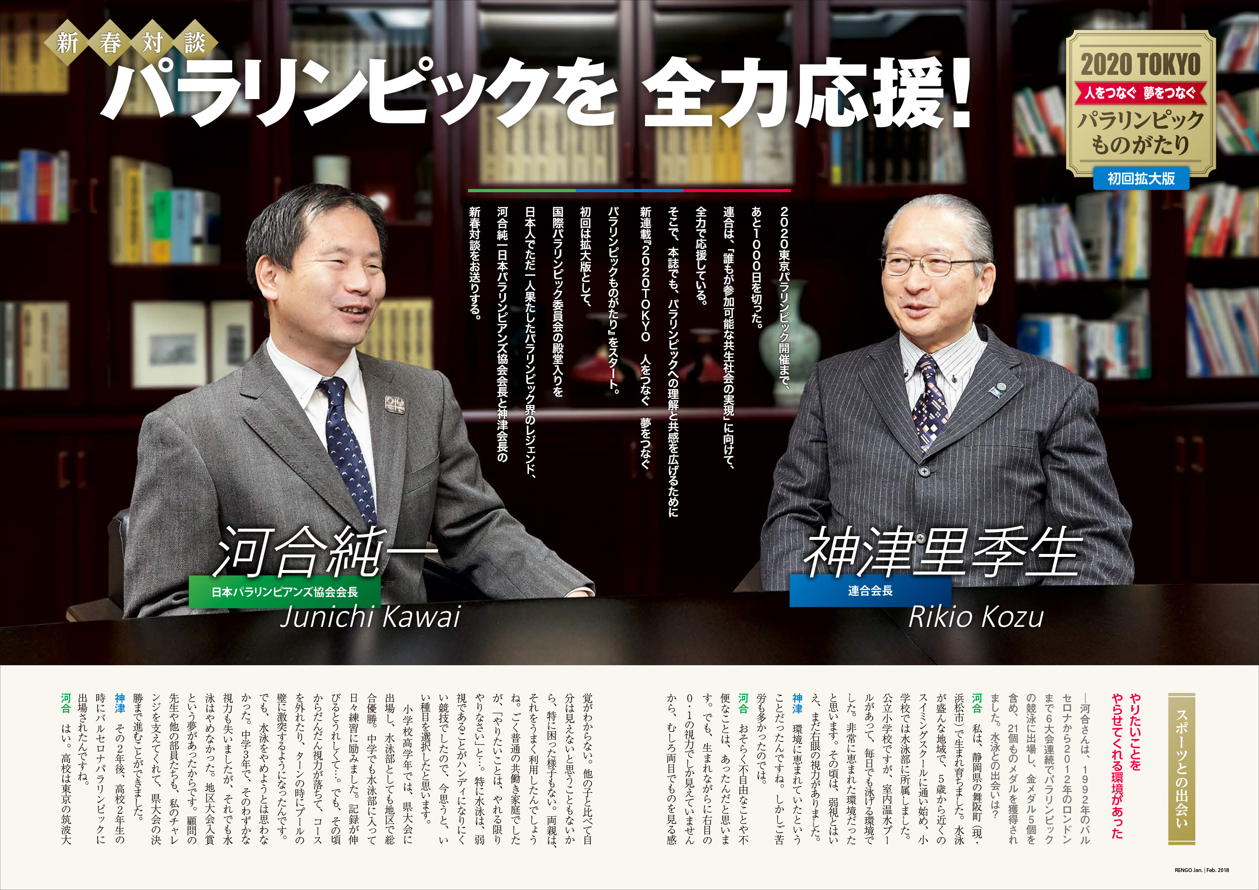 初回は拡大版として、国際パラリンピック委員会の殿堂入りを日本人でただ一人果たしたパラリンピック界のレジェンド、河合純一日本パラリンピアンズ協会会長と神津会長の新春対談をお送りする。