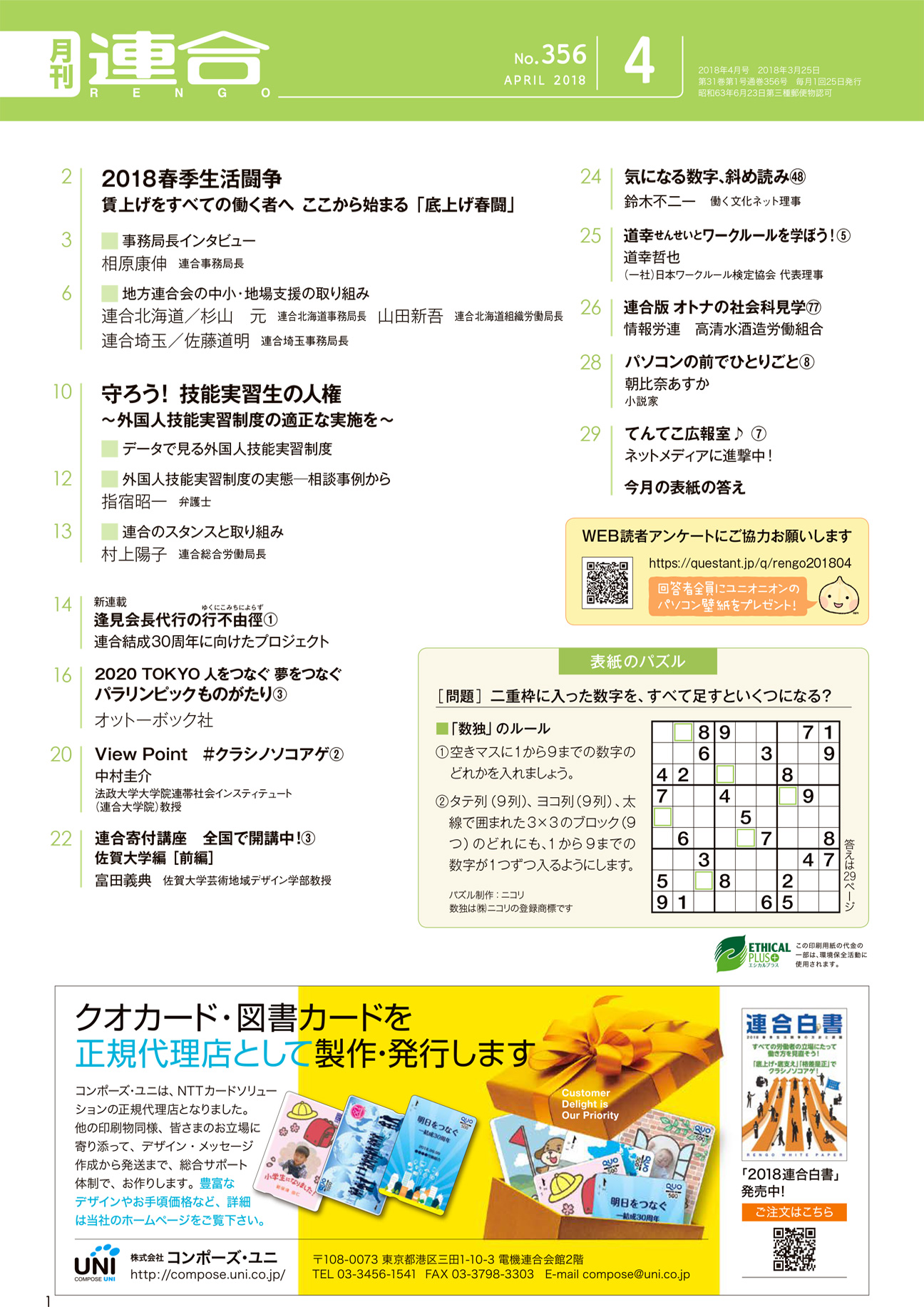 昨年11月には、技能実習生の保護と制度の適正な実施を目的とする「外国人技能実習法」(以下、新法)が施行された。実習の現場では、国際貢献とは名ばかりで、長時間労働や賃金未払い、最賃を下回る労働関係法令違反、旅券取り上げ等の人権侵害事案などのさまざま問題が起きていたからだ。連合は、開発途上国等への技能移転による国際貢献という制度本旨に沿った運営、監理体制の強化、技能実習生の権利保護を求めて取り組んでいる。外国人技能実習制度とはどのような制度なのか、制度の適正な実施のために何が必要なのか。新法の施行を機にあらためて考えてみたい。