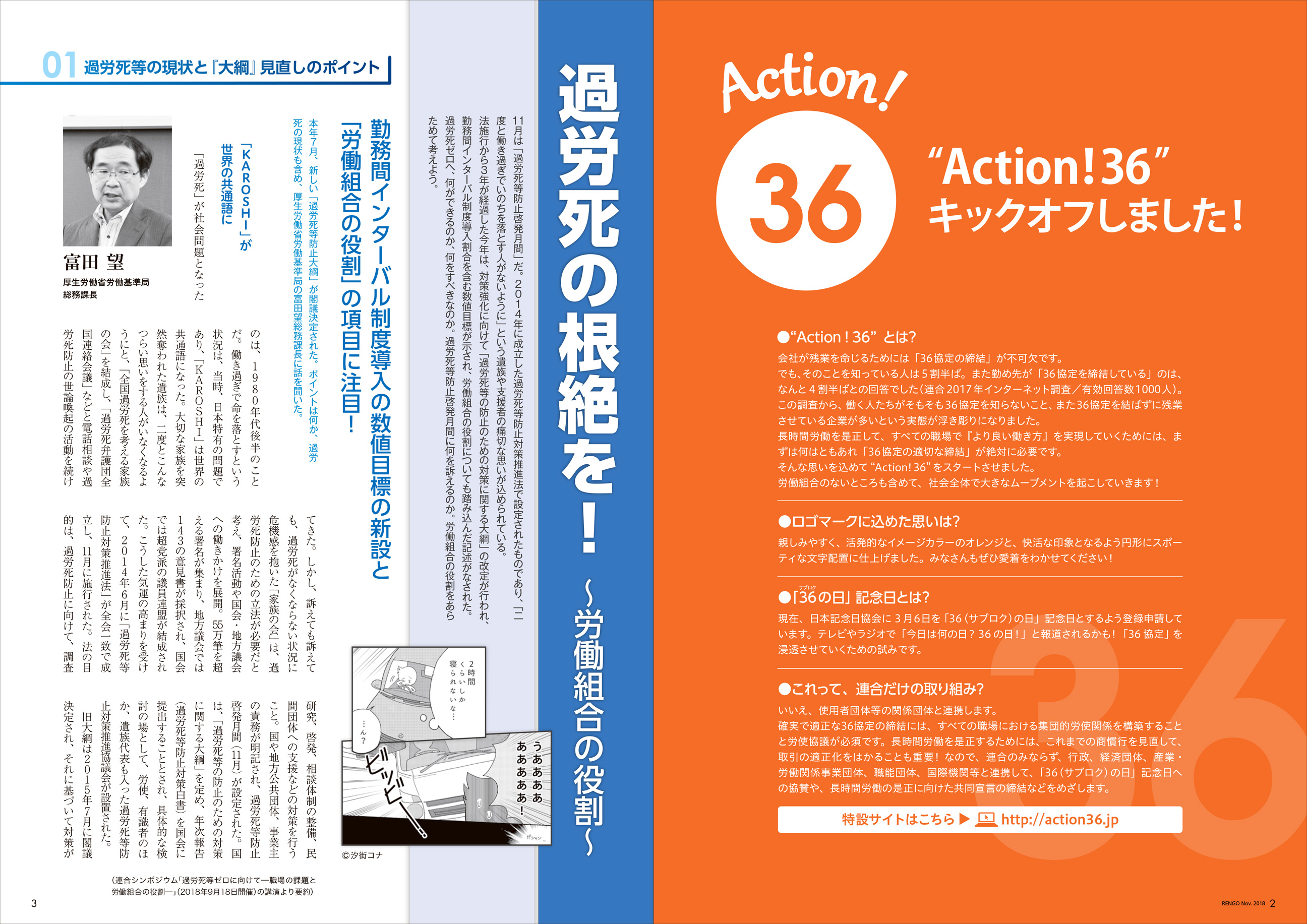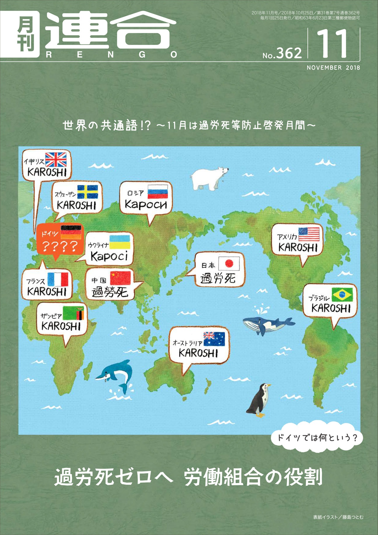 11月は「過労死等防止啓発月間」だ。2014年に成立した過労死等防止対策推進法で設定されたものであり、「二度と働き過ぎでいのちを落とす人がないように」という遺族や支援者の痛切な思いが込められている。法施行から3年が経過した今年は、対策強化に向けて「過労死等の防止のための対策に関する大綱」の改定が行われ、勤務間インターバル制度導入割合を含む数値目標が示され、労働組合の役割についても踏み込んだ記述がなされた。過労死ゼロへ、何ができるのか、何をすべきなのか。過労死等防止啓発月間に何を訴えるのか。労働組合の役割をあらためて考えよう。