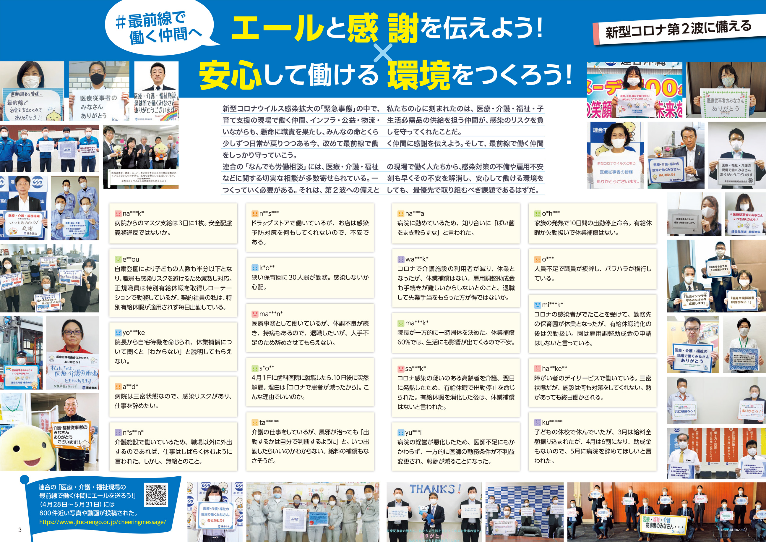 新型コロナウイルスで助けを求めている人が大勢います。私たち一人ひとりができることはなんでしょうか。それは一人ひとりの“支え合いたい”“助け合いたい”という想いを届けることです。連合30周年を機に立ち上げた「ゆにふぁん」の仕組みを使って、どうかみなさんの力を貸してください。今すぐアクセスしてください!