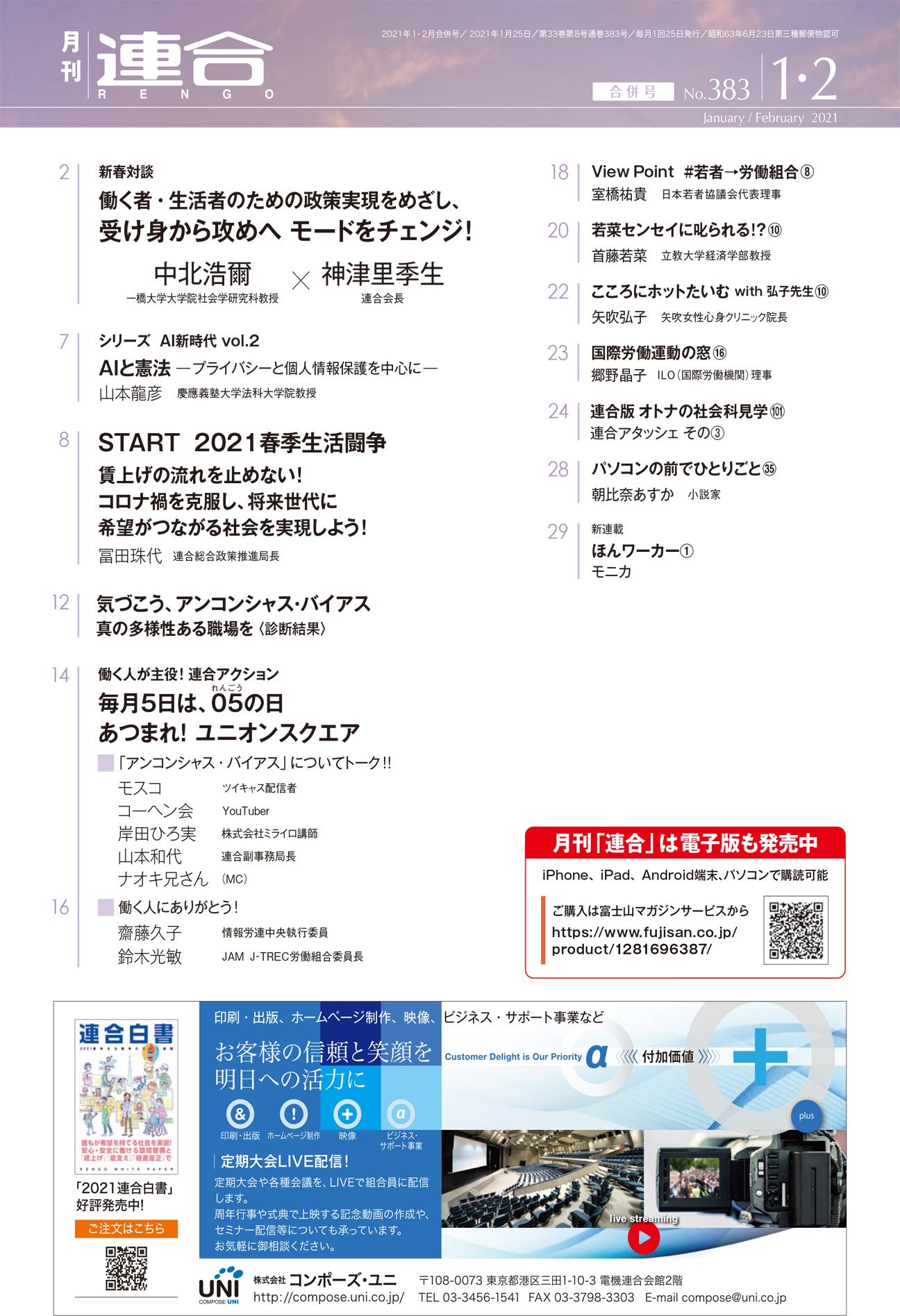 2014闘争以降7年連続で賃上げを実現し、「底上げ」「底支え」「格差是正」の流れをつくり出してきた中で迎える2021闘争は、コロナ禍によって明らかとなった社会の脆弱性と日本が抱える構造課題の克服に向けて、これまでに経験したことのない環境下での取り組みとなる。