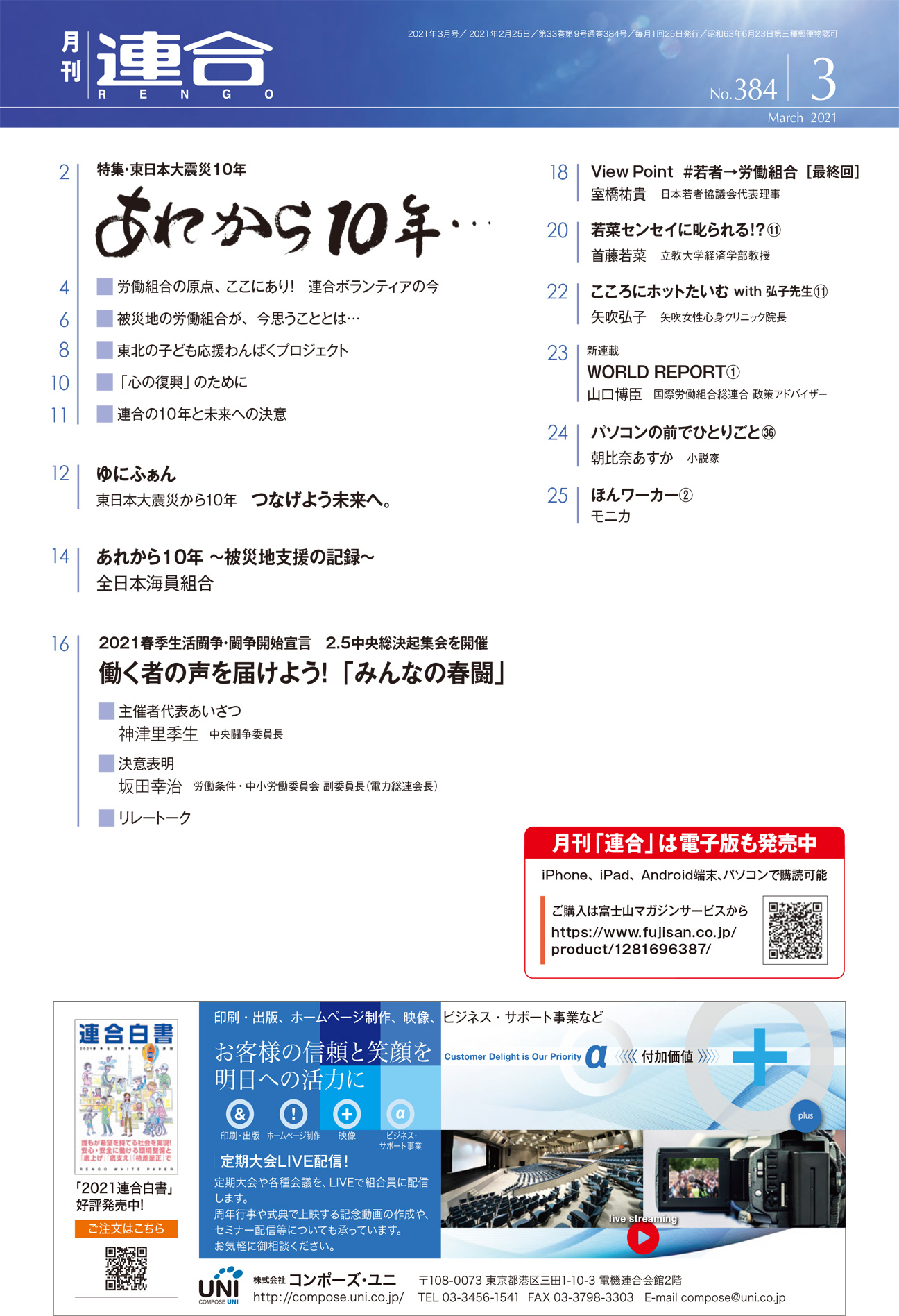 連合は2月5日、VR 空間で「2021春季生活闘争・闘争開始宣言2.5 中央総決起集会」を開催した。新型コロナウイルスの猛威は未だ止まず、とりわけセーフティネットが脆弱な人たちの仕事と生活を直撃している。この危機を突破するために、VR会場に500名、YouTubeLive に983名が参集し、「みんなの春闘」を闘い抜く決意を確認した。