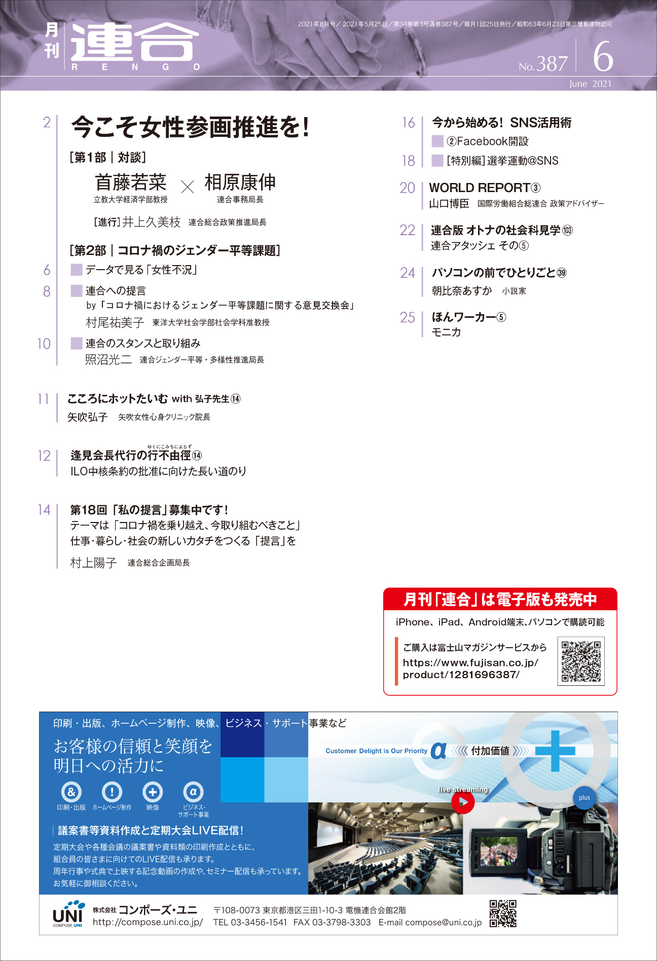 連合は、運動方針の重点分野に「男女平等をはじめとして、一人ひとりが尊重された『真の多様性』が根付く職場・社会の実現」を掲げている。そして6月は、その取り組みのいっそうの強化をはかろうという「連合男女平等月間」だ。