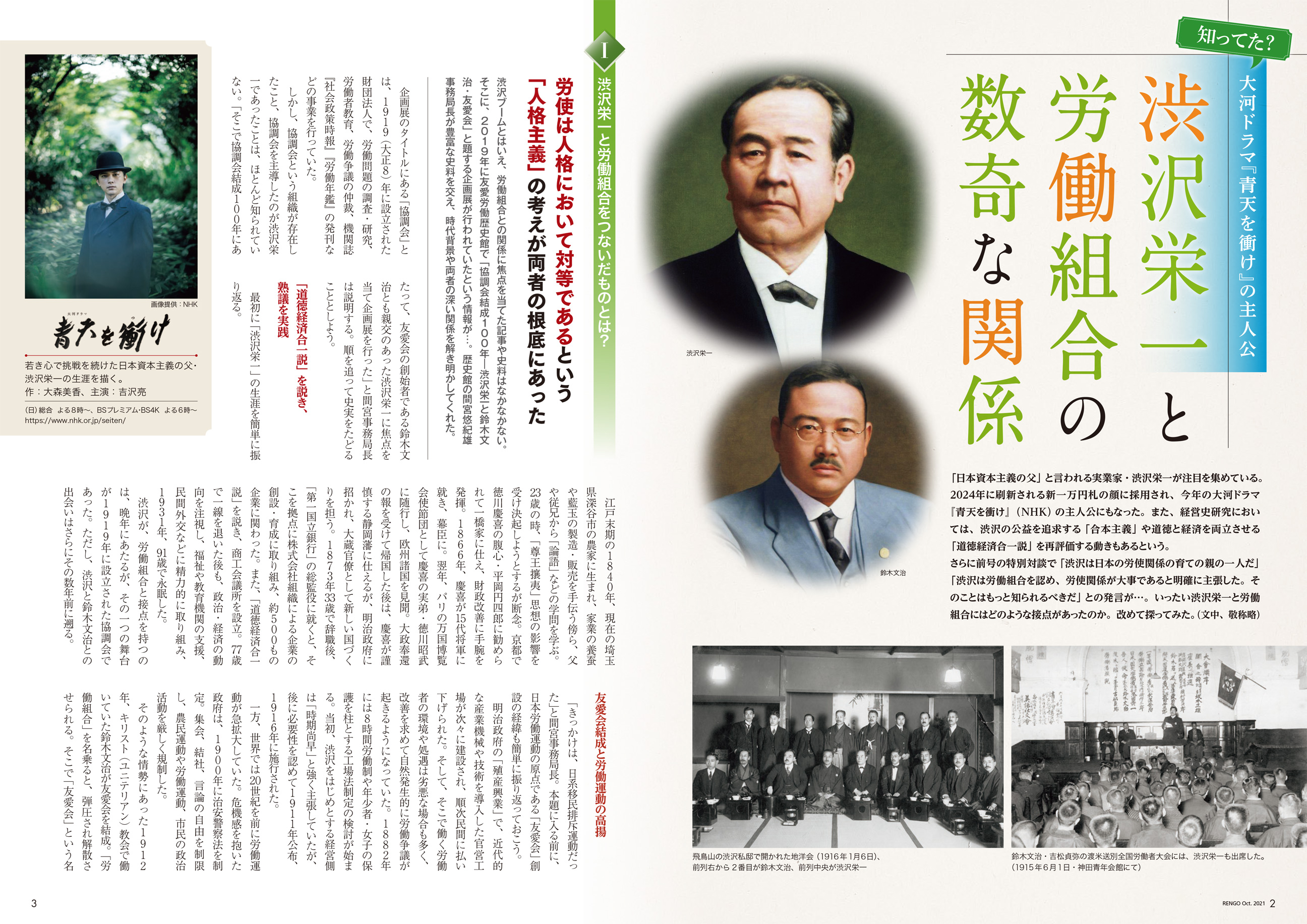 さらに前号の特別対談で「渋沢は日本の労使関係の育ての親の一人だ」「渋沢は労働組合を認め、労使関係が大事であると明確に主張した。そのことはもっと知られるべきだ」との発言が…。いったい渋沢栄一と労働組合にはどのような接点があったのか。改めて探ってみた。