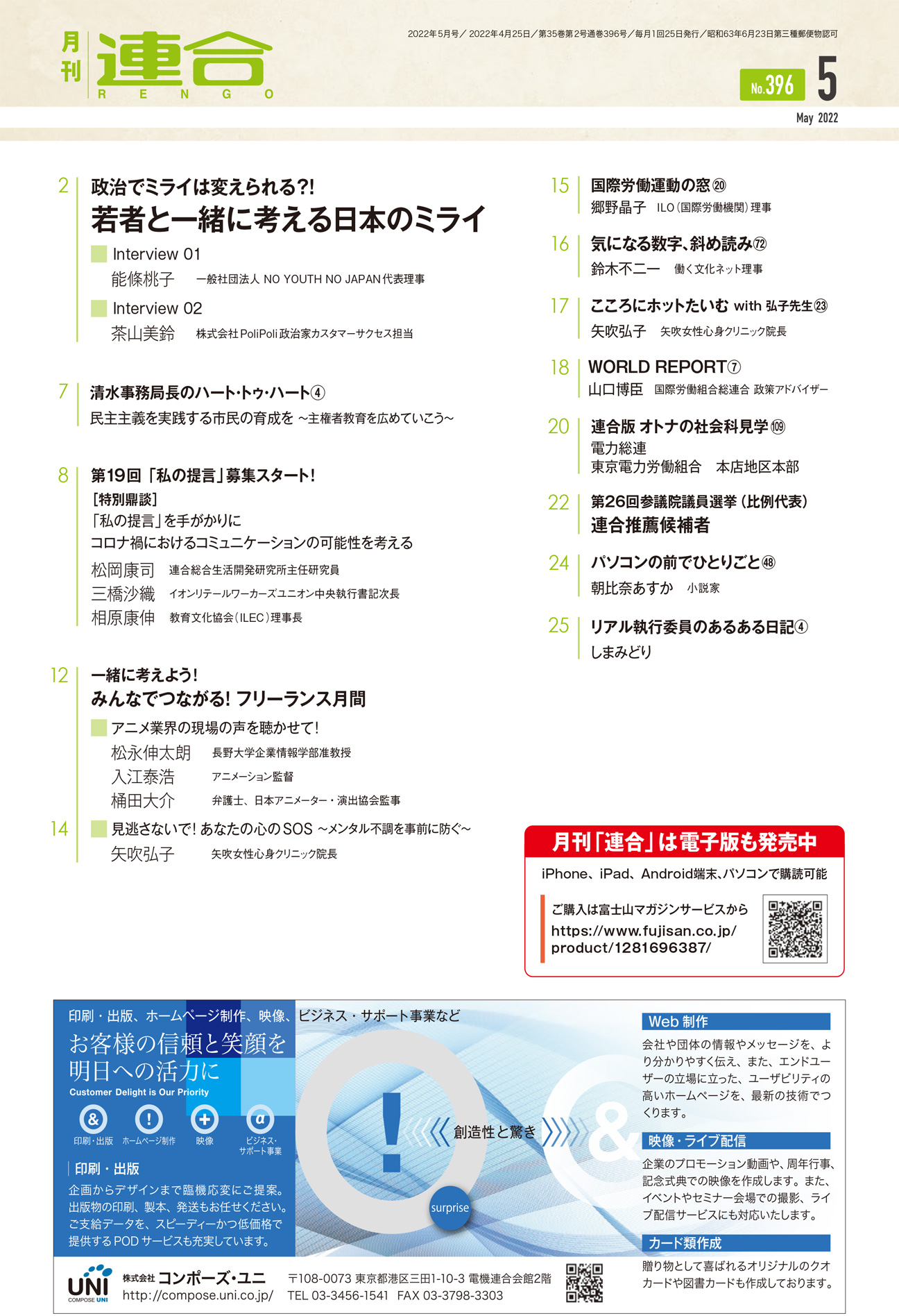 そのような中、コロナ流行前の2019年に書かれた第16回「私の提言」入賞作に、その手がかりとなる2つの論文があった。労働組合における「新情報技術の積極的な利活用」「オンラインコミュニケーションの可能性」をテーマとしたもので、変化を先取りした内容だ。