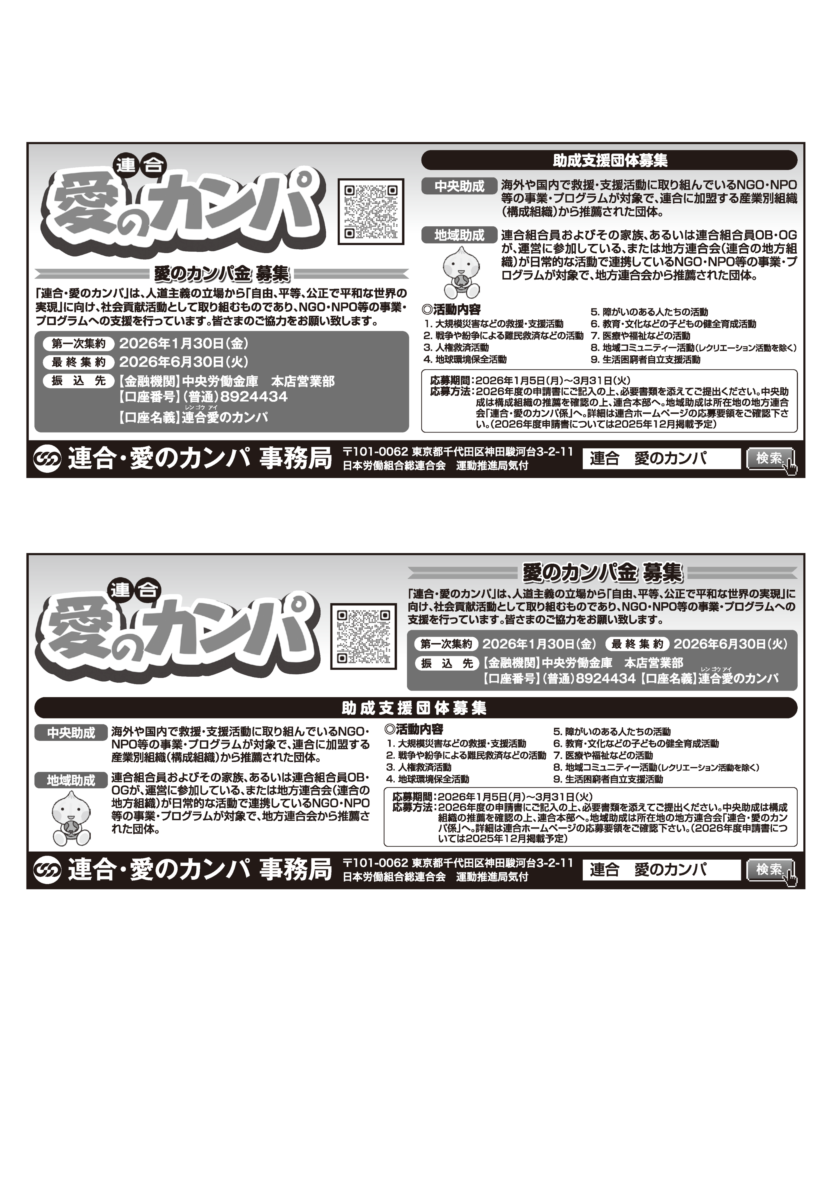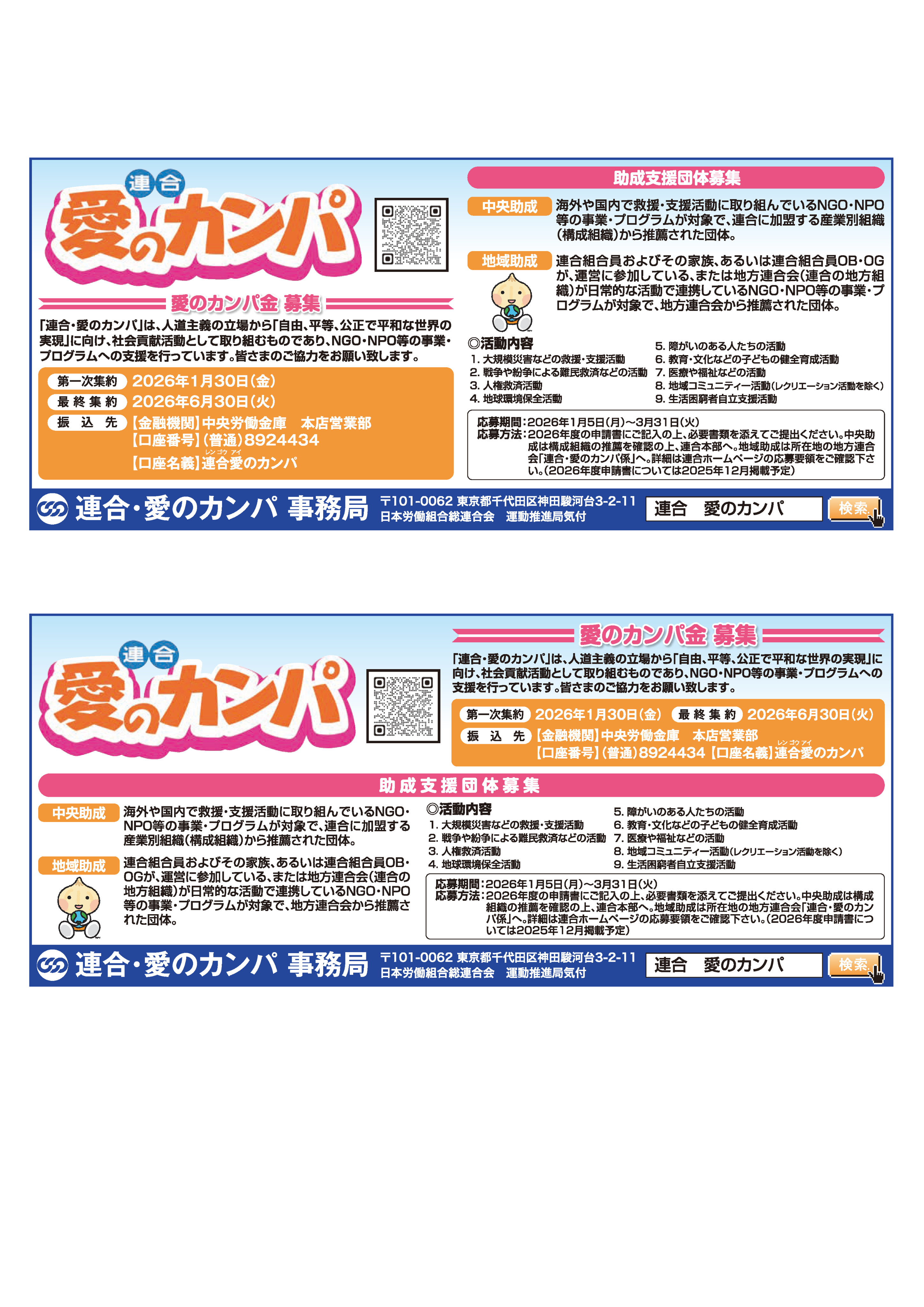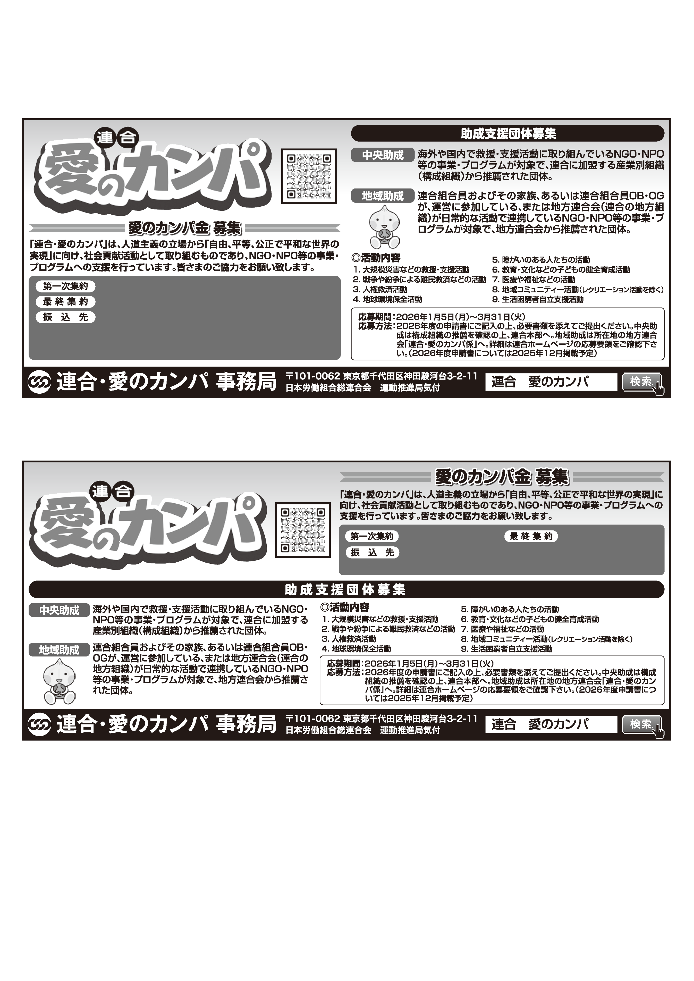 ※2026年度 愛のカンパ助成 応募・申請は、2025年12月に当ページにて案内予定です。