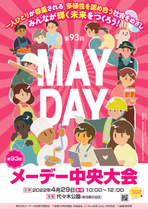 第93回メーデー中央大会は、2022年4月29日(金・祝)10:00~12:00、渋谷区代々木公園において、3年ぶりに多くの働く仲間が結集し開催しました。 当日の様子は「YouTube Live」・「ツイキャス」によりライブ配信しましたので、是非ご覧ください。