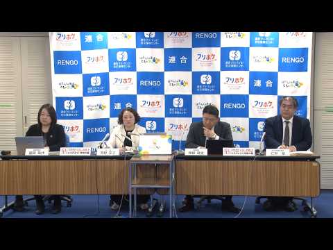 芳野会長、清水事務局長、村上副事務局長、仁平総合政策推進局長(2024年4月18日)