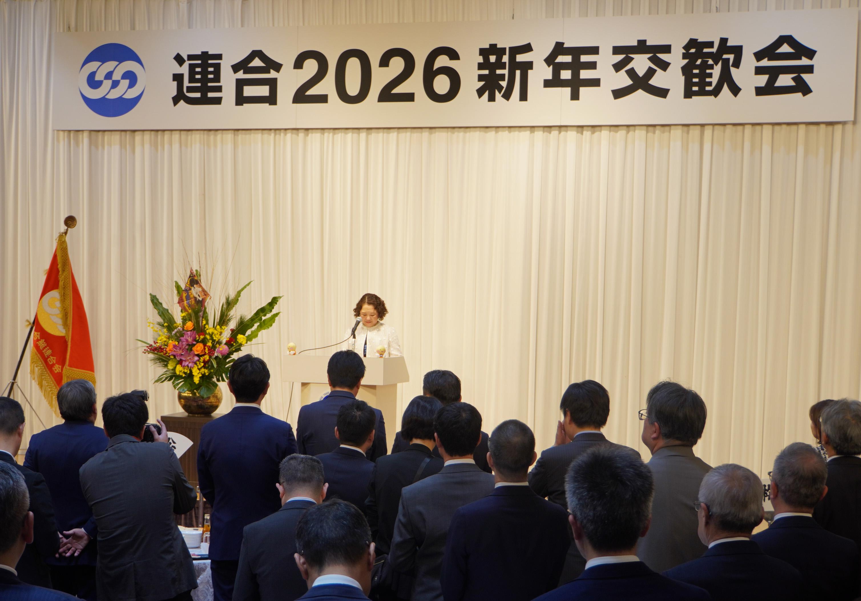 連合は、2026年1月5日、都内のアートホテル日暮里ラングウッドで「連合2026新年交歓会」を開催しました。当日は、木原稔内閣官房長官をはじめ、連合出身議員政治懇談会や各政党、経済団体、労働界などから約850名のご参加をいただきました。