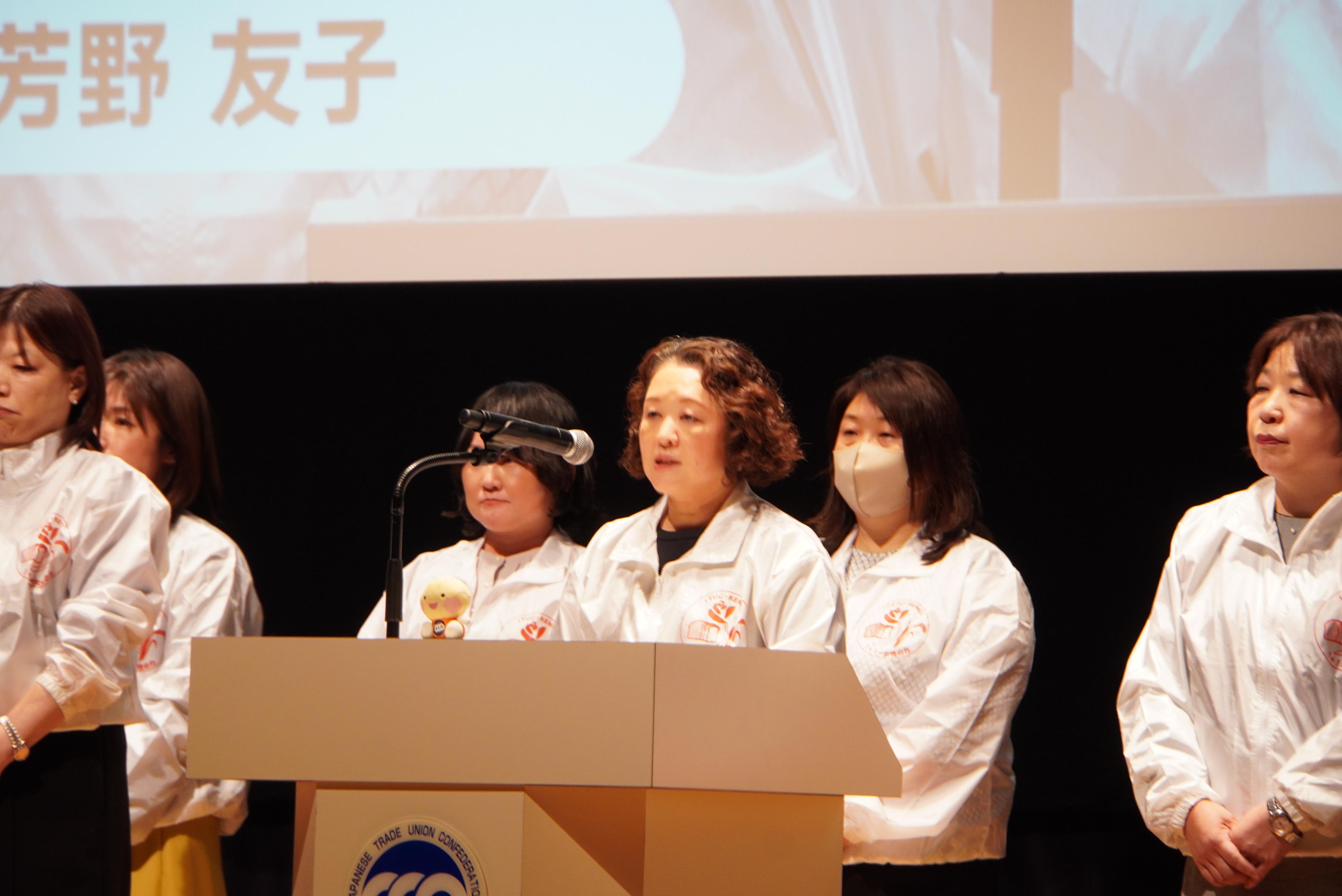 その後、岡田奈美連合東京の女性委員会副委員長(UAゼンセン東京都支部)が集会アピール(案)を提起し、満場の拍手により採択しました。