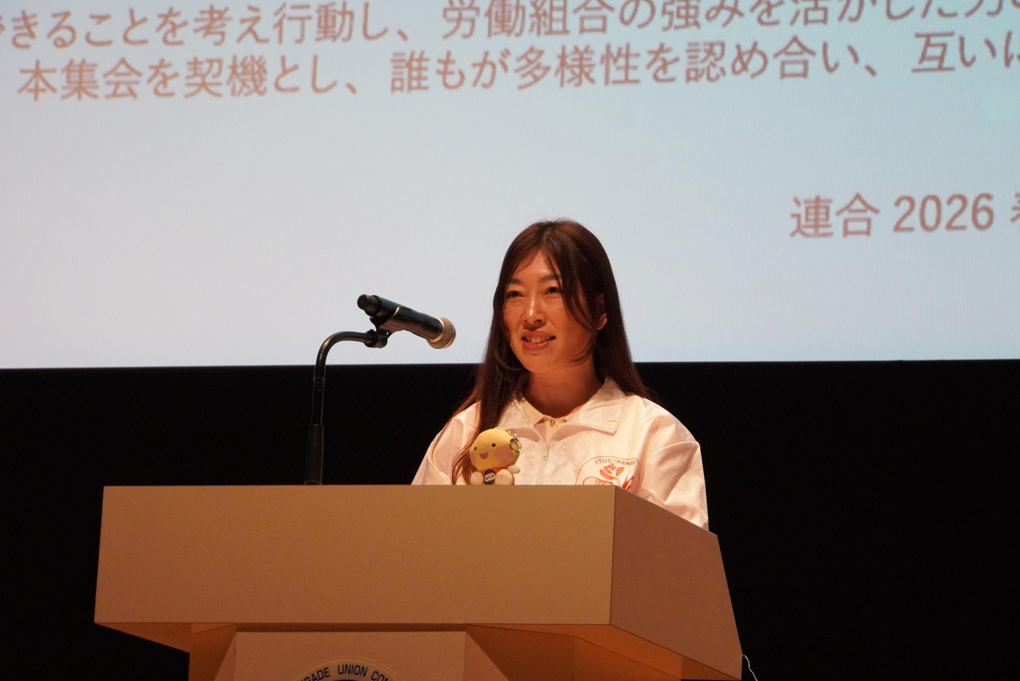 冒頭、主催者を代表し芳野友子会長は、選択的夫婦別氏制度導入の立場であること、労働時間規制の緩和は断固として反対であることを述べたうえで、「多様性を認め合う社会の実現は、理念や政策だけで達成されるものではない。春季生活闘争などを通じて、各々の職場における具体的な取り組みの積み重ねが不可欠。誰もが働きやすい職場と、多様性を認め合う社会の実現に向けて、歴史的な一歩を踏み出そう」と挨拶しました。