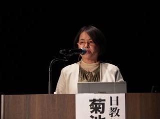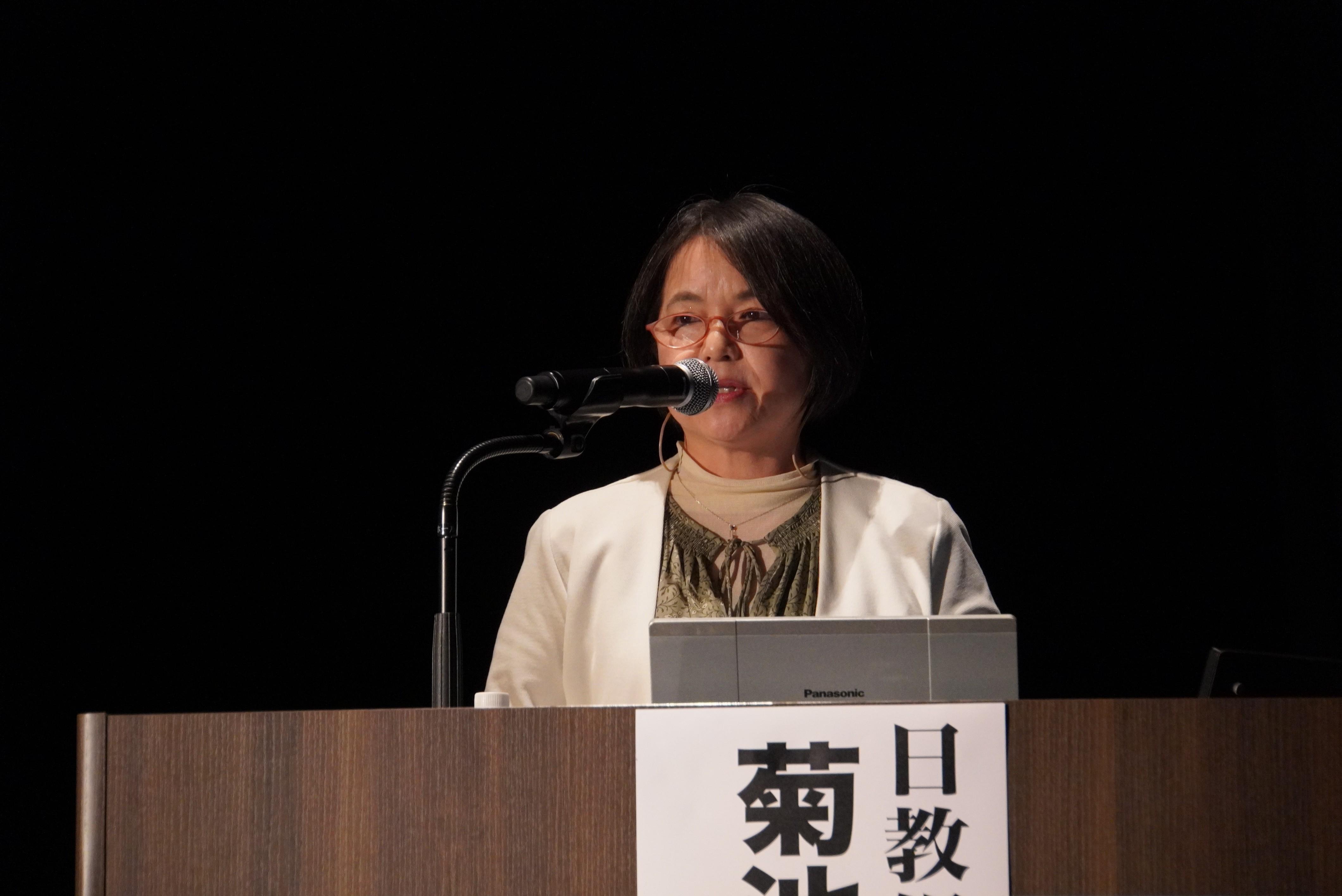 次に、本集会の基調講演として、労働調査協議会の後藤嘉代主任調査研究員から「労働組合調査からみた男女間賃金格差」と題したご講演をいただきました。一般労働者と組合員の男女間賃金格差を比較し、年代が上がるにつれて賃金格差が拡大していること、背景には短時間勤務制度を選択する女性が多いことが影響していること、賃金・労働条件を担当する女性役員が増加すると、ジェンダーの視点が入りやすいなど、様々なデータ分析から特徴点の報告をいただきました。