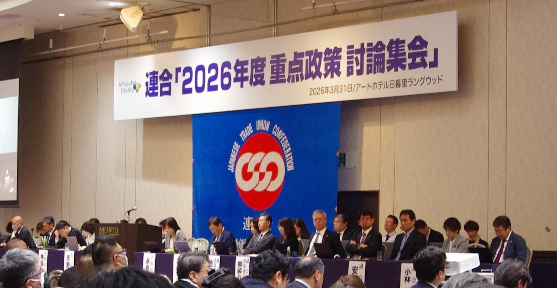 3月31日(火)、連合は、「2026年度 重点政策 討論集会」を開催しました。構成組織、地方連合会、政党、連合出身議員政治懇談会、連合フォーラム議員、関係組織、マスコミなどから、計405名が参加しました。