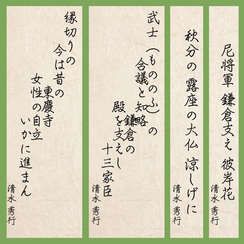 高徳院からバスに乗って鎌倉駅に到着。暑さ残る秋分の日の鎌倉を後にして帰京の途についた。2022年の大河ドラマ『鎌倉殿の13人』は、鎌倉幕府の2代執権となった北条義時を主人公に、平安末期から鎌倉初期の時代を描いた作品だった。鎌倉殿(初代将軍・源頼朝、二代将軍・源頼家、三代将軍・源実朝)を合議と知略をもって支えた13人の有力御家人に想いを馳せると、連合の芳野会長を支えた会長代行の2人、産別からの13人の副会長、ブロック選出の4人の女性副会長の姿が重なる。夫と二人の息子の将軍三人を亡くした後、尼将軍として鎌倉幕府を支え、見届けた、波乱に満ちた生涯を送った北条政子。寿福寺の彼女の墓と伝わる五輪塔は、秋分の日に静かに佇んでいた。