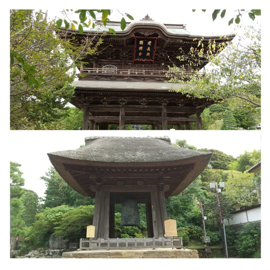 続いて訪れた建長寺は、鎌倉五山の第一位で、1253(建長5)年に鎌倉幕府の5代執権・北条時頼によって、日本初の禅の専門道場として創建された。「梵鐘」は、創建当時の数少ない遺品の一つとして貴重とされ、国宝に指定されている。夏目漱石は1895(明治28)年に「鐘つけば 銀杏(いちよう)ちるなり 建長寺」と詠んで、親友の正岡子規は、この句を参考に「柿くへば 鐘が鳴るなり 法隆寺」を作ったとされる。