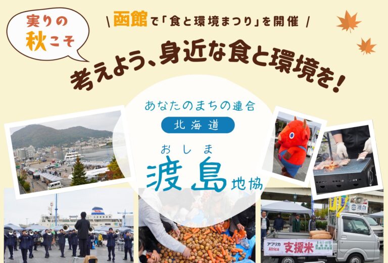地協第1弾は、北海道・道南をカバーする渡島(おしま)地協です。毎年秋、市民参加型イベントとして、地協をあげて開催しているのが「食と環境まつり」。今年で13回目を迎え、市民にもすっかり定着してきたイベントをレポートします。