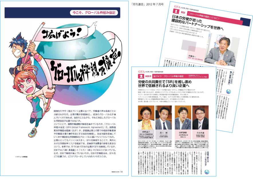 日本初のGFAが締結されたのは、2008年11月。髙島屋労使、サービス・流通連合(JSD)、UNIによる協定です。当時、JSDが加盟するUNIは日本初のGFA締結を活動目標に掲げ、企業向け説明資料などを作成して熱心に加盟組織に働きかけていました。UNI-LCJ(日本加盟組織連絡協議会)の議長は、髙島屋労組出身の桜田高明JSD会長(後にILO労働側理事)。日本で第1号のGFAを結ぼうと本当に尽力されました。髙島屋労組、JSD、UNIの並々ならぬ努力と経営トップの英断によって初のGFAが実現。その後、2011年11月にミズノ(UIゼンセン同盟)、2014年11月にイオン(UAゼンセン)が続きました。