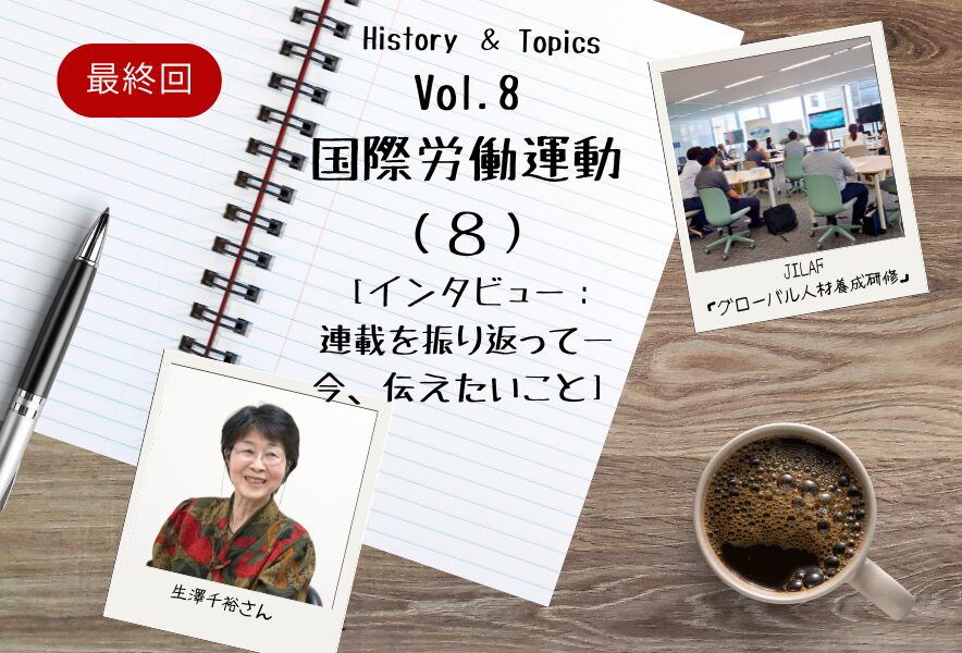 国際労働運動シリーズの初回(「連合結成とICFTU加盟問題」)配信は、ちょうど1年前の2024年12月5日。以降、10回にわたって、国際労働運動の歴史に刻まれた日本の労働組合の知られざるエピソードを発掘してきた。連載の締めくくりにあたって、生澤千裕日本ILO協議会理事に、語り尽くせなかったテーマや国際労働運動をめぐる課題、混迷を深める世界情勢の中で、今伝えたいことを聞いた。