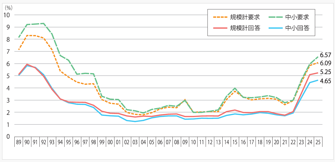 過去3年間の大幅な賃上げで、大手を中心に5%台の賃上げを達成した組織も増えていますが、それでも中小組合の賃上げ率は、4%台に留まります。組合のない職場は、組合のある職場に比べて賃上げ率が1%程度低いという調査結果も出ています。