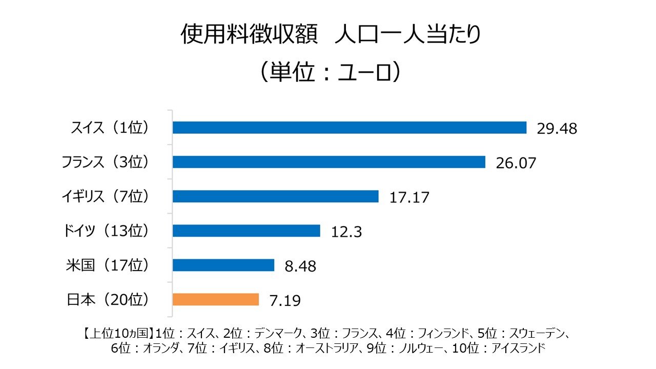 使用料徴収額 人口一人あたり(単位:ユーロ)【JASRAC HPより引用】