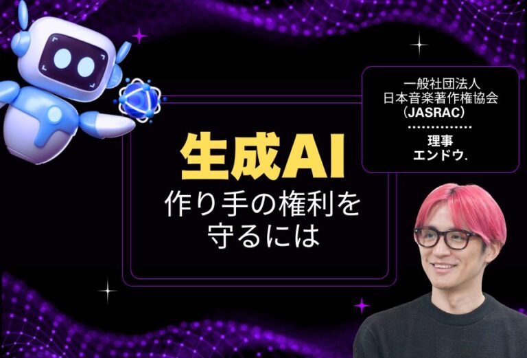生成AIは多くの人にとって役立つツールに進化する一方で、声優の声やイラストレーターの描いた絵、ミュージシャンの作った曲などが無断で学習され使われていることが問題視されている。生成AIによる権利侵害を防ぎ、クリエイターを守るためにはどうすればいいだろうか。JASRACの理事でミュージシャンのエンドウ.さんに聞いた。
