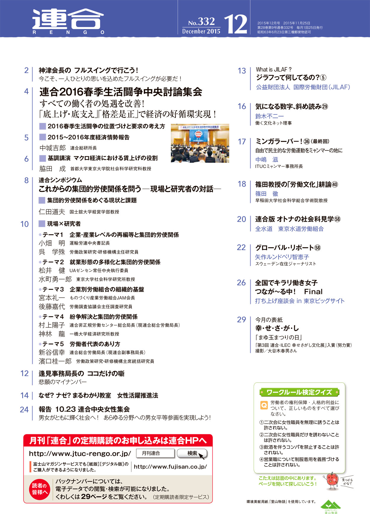 「2016春季生活闘争方針」は、今集会での議論を踏まえ、11月27日の中央委員会で決定される。