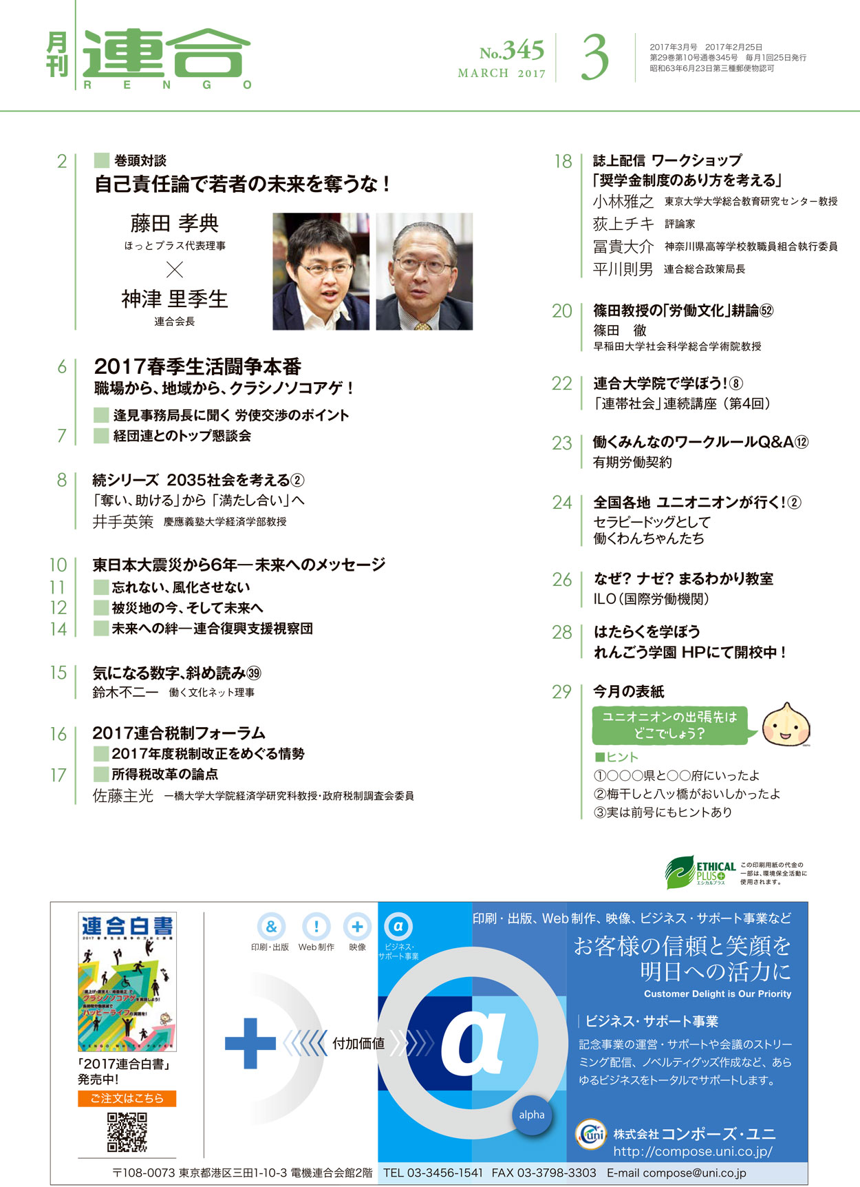 今、学生の2人に1人が奨学金を利用していることを読者の皆さんはご存知だろうか。しかもほとんどが有利子の貸与型である。どこに就職するかもまだわからないうちに借金を背負う上に、借金であるとの自覚もないまま数百万円の奨学金を利用して進学する若者が増えている。もし、卒業後に正社員の職に就けなかったら… 返済に苦しむことは想像に難くない。連合は、給付型奨学金制度の実現が「貧困・格差の解消」につながるとの思いから、「クラシノソコアゲ応援団! RENGOキャンペーン」のテーマのひとつとして運動を展開している。
