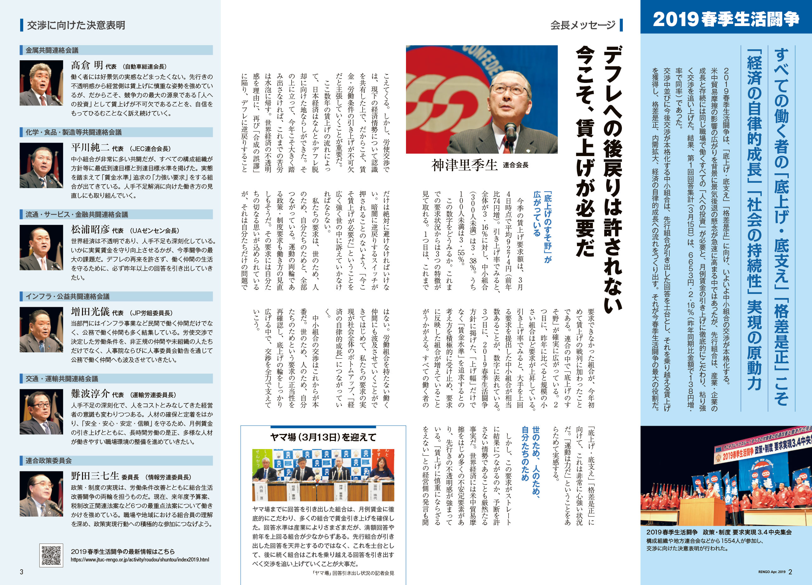 2019春季生活闘争は、「底上げ・底支え」「格差是正」に向け、いよいよ中小組合の交渉が本格化する。