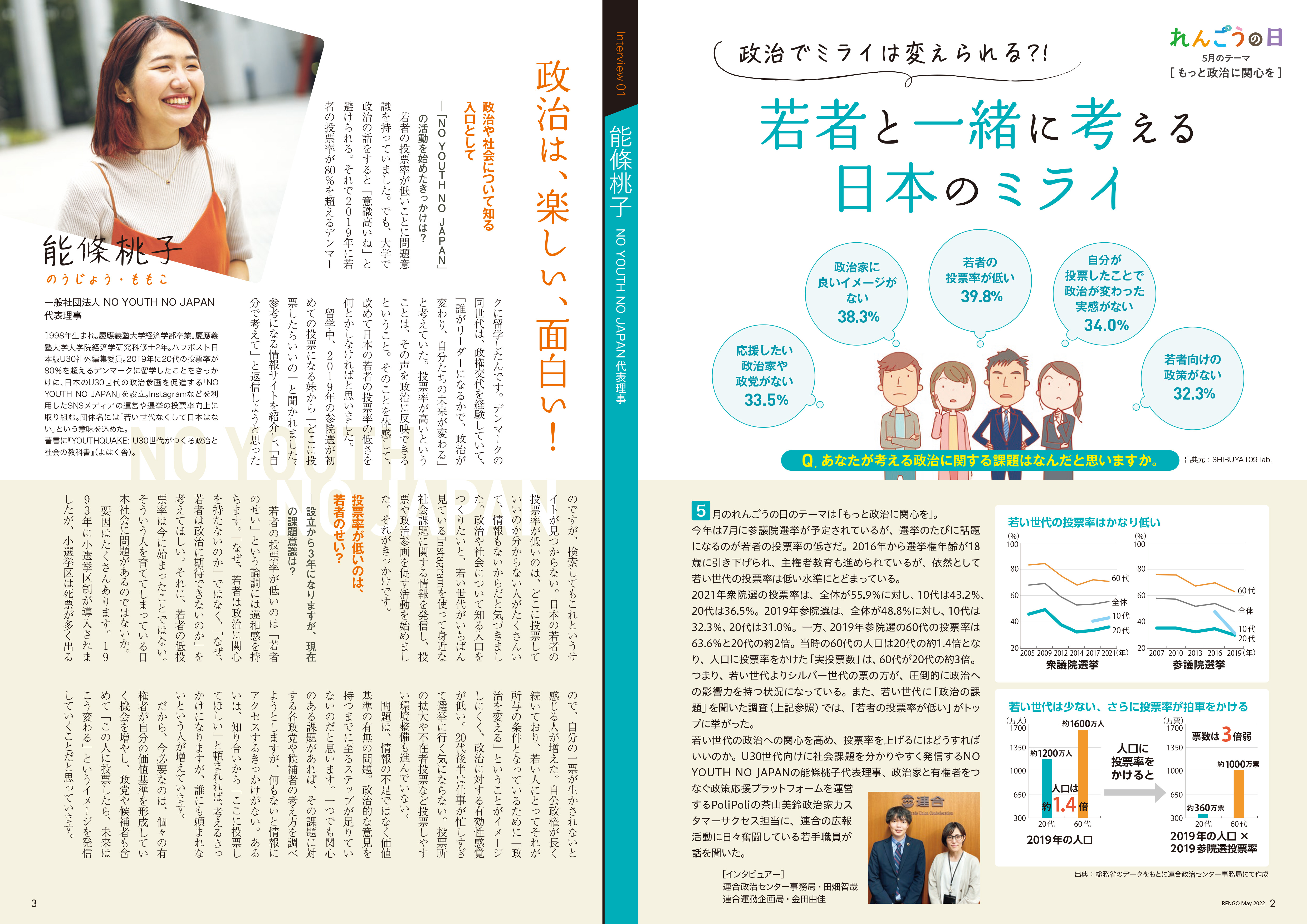 5月のれんごうの日のテーマは「もっと政治に関心を」。